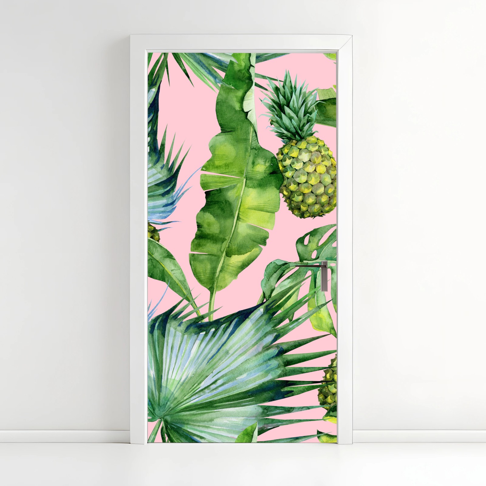 Door sticker Tropical pineapple watercolor pattern on pink