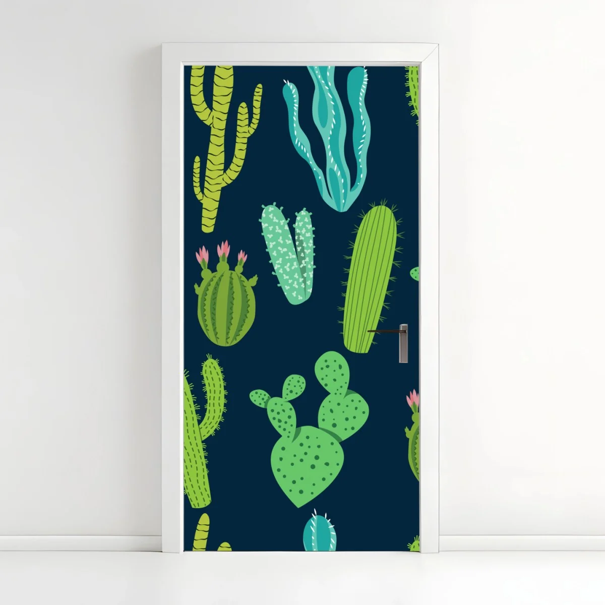 - botanical, seamless pattern, nursery, green, blue, cactus, vector illustration, home decor, succulents, desert plants