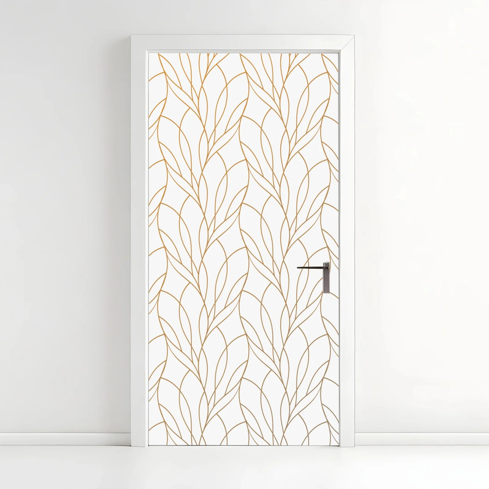 Door sticker Golden leaf pattern on white background