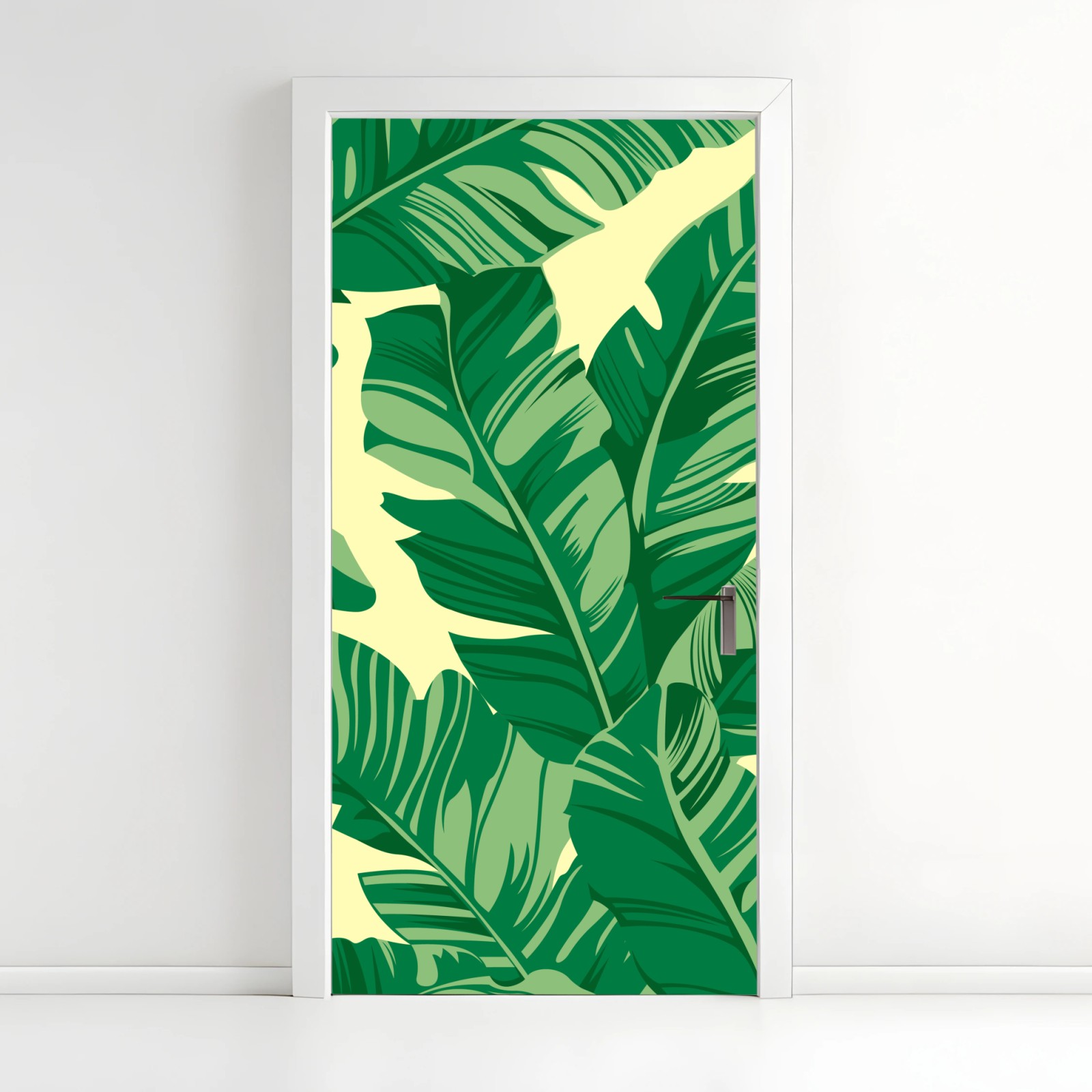 - botanical, tropical, exotic, summer, banana leaves, palm leaves, tropical decor, greenery, leaf pattern, vector illustration