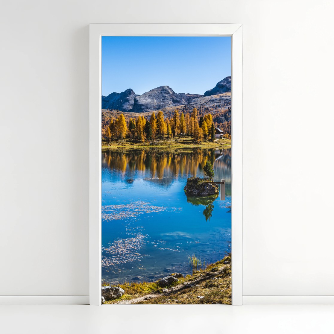 Door sticker Autumn alpine lake with mountain reflections