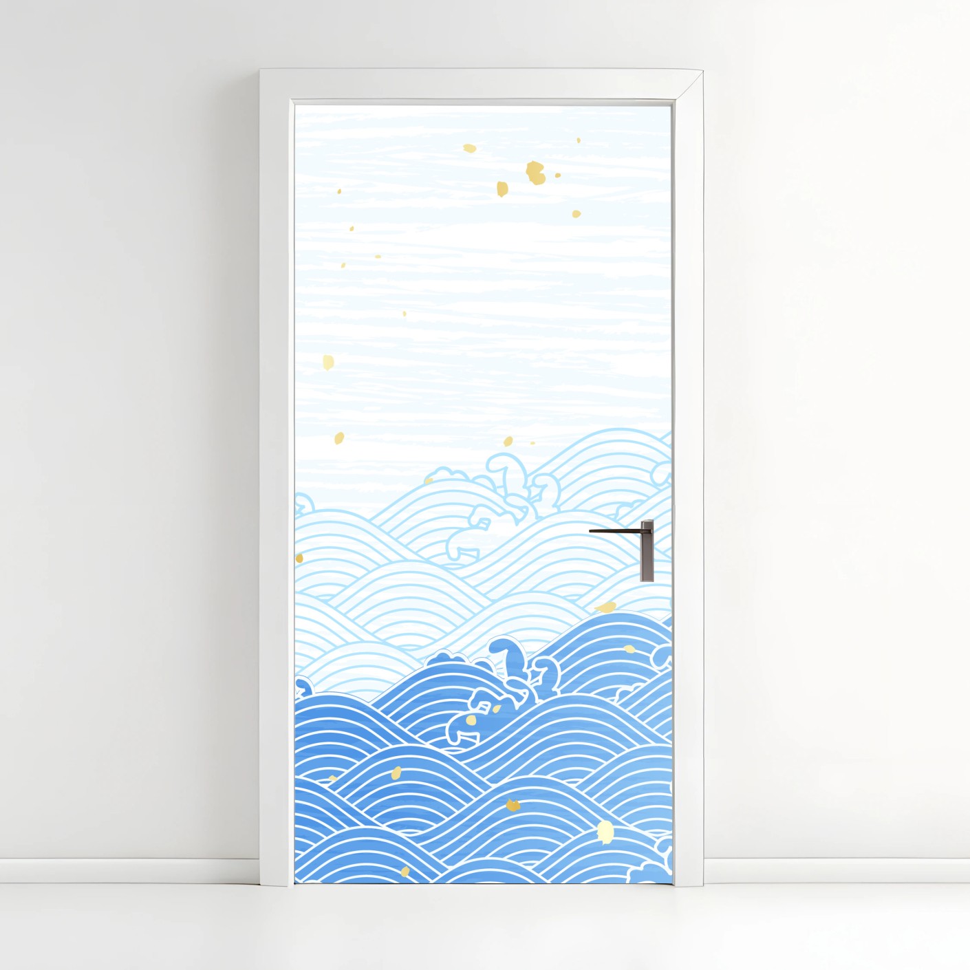 Door sticker Calm blue waves with gold accents