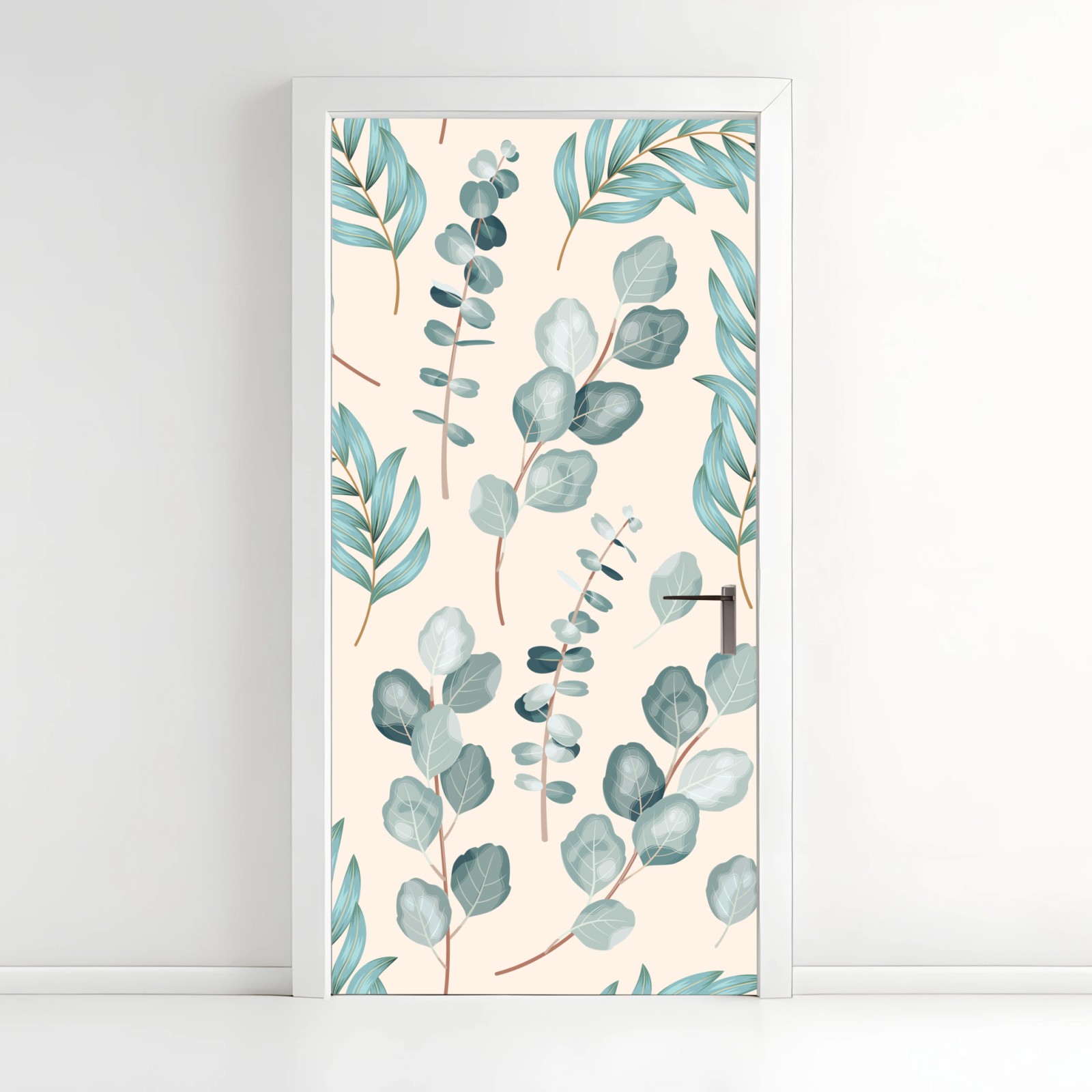 - botanical, wallpaper, pattern, scandinavian, floral, leaves, green, illustration, beige, eucalyptus