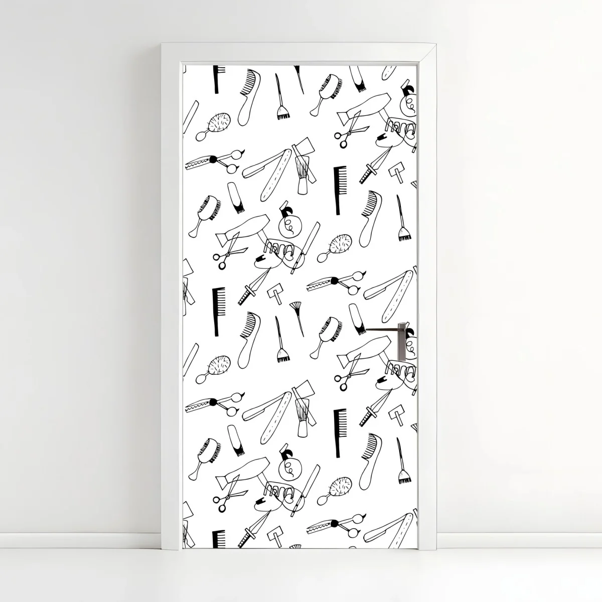 Door sticker Hand-drawn barber tools pattern