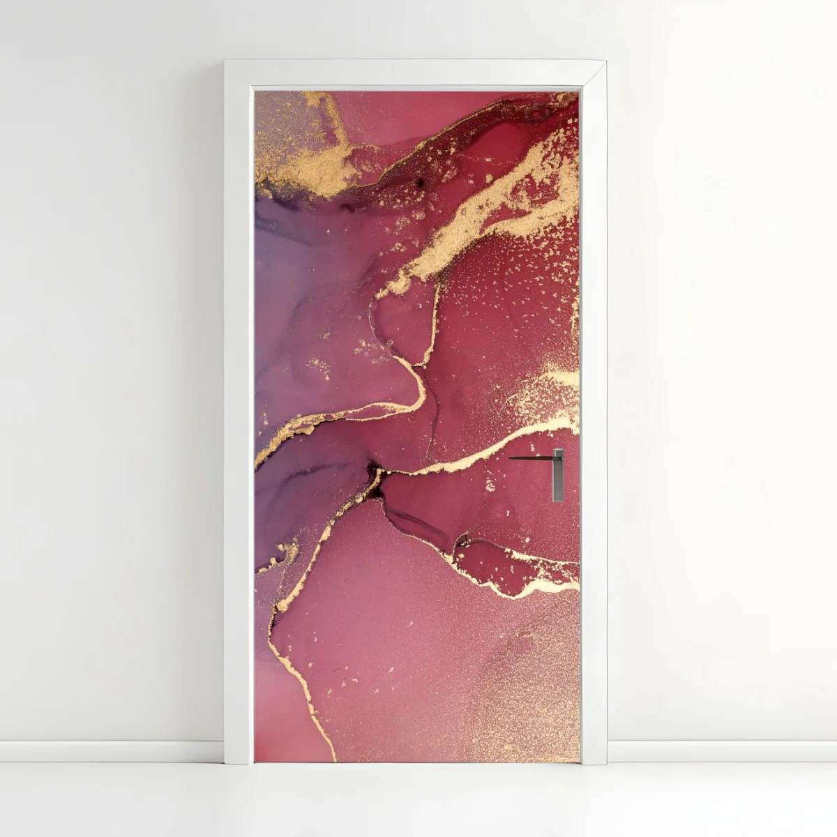 Door sticker Abstract purple and turquoise marble art with gold veins