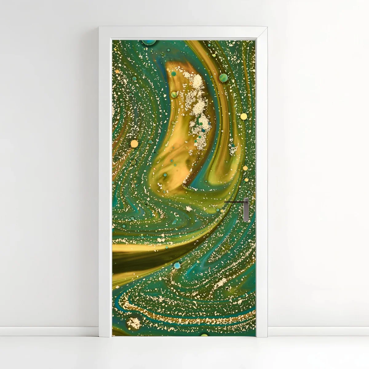 - abstract, green, gold, modern art, marble texture, wall decor, swirls, fluid art, acrylic painting, iridescent