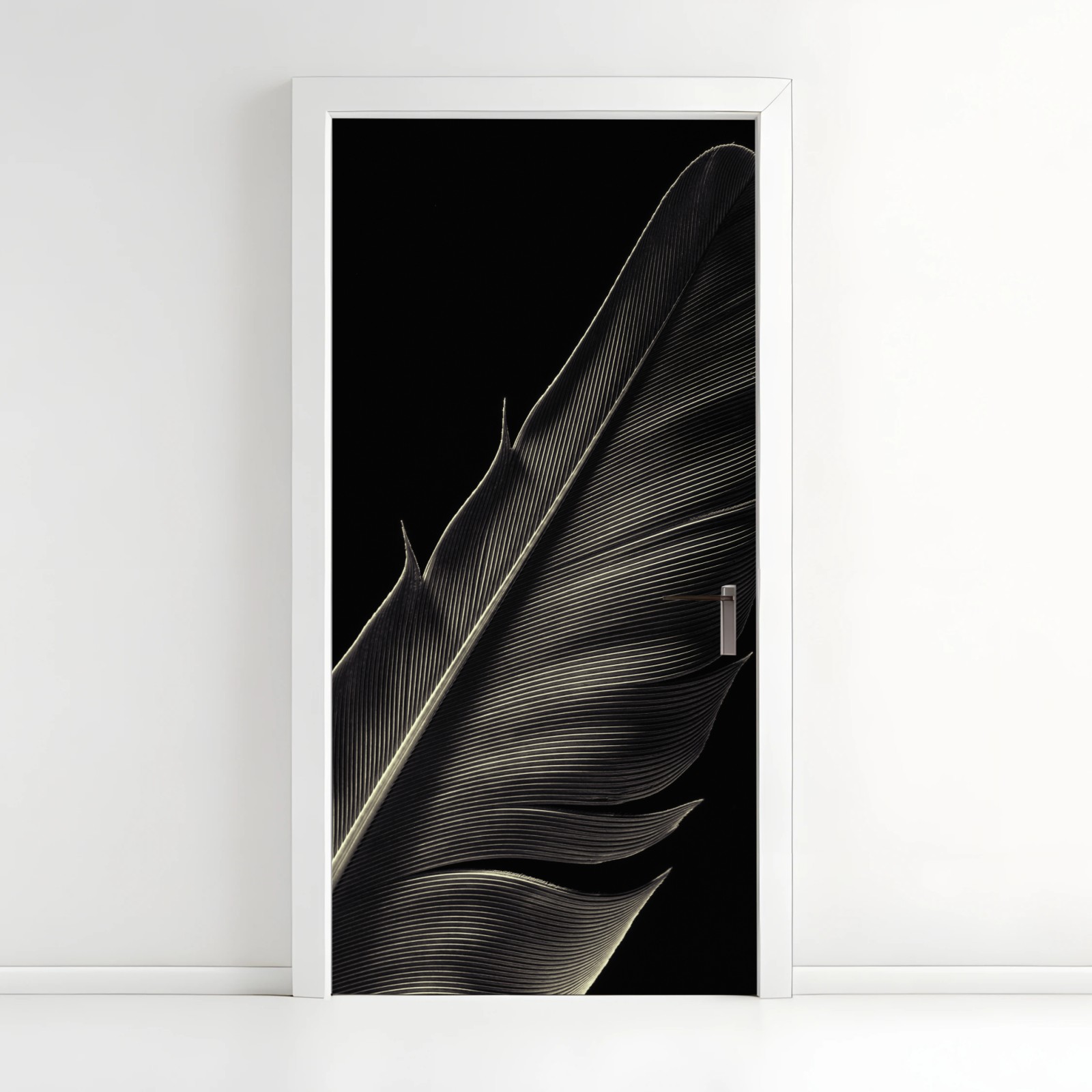 Door sticker Delicate feather study in monochrome