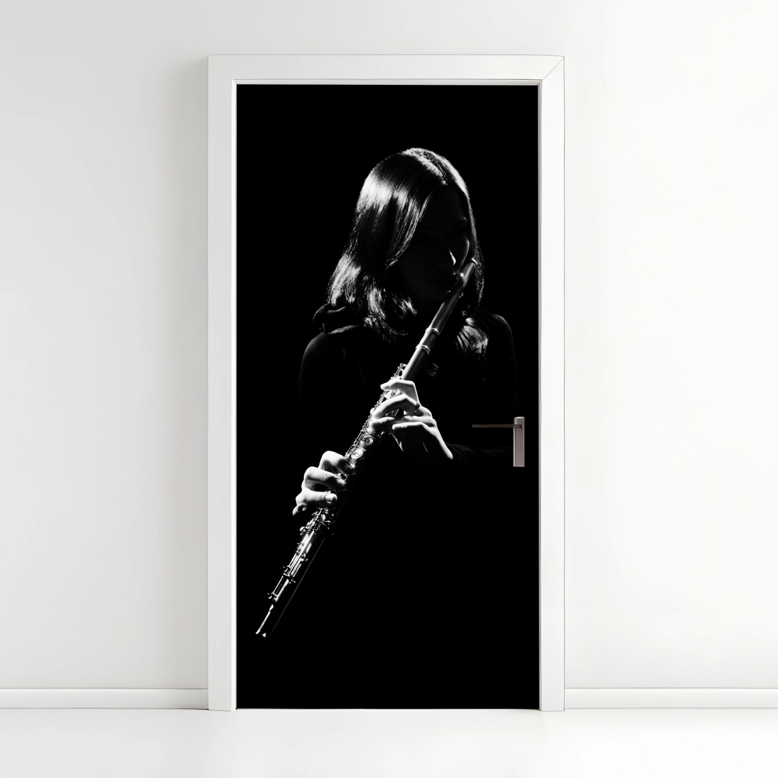 - black and white, silhouette, elegant, concert, classical music, instrument, musician, flute, flutist, music portrait