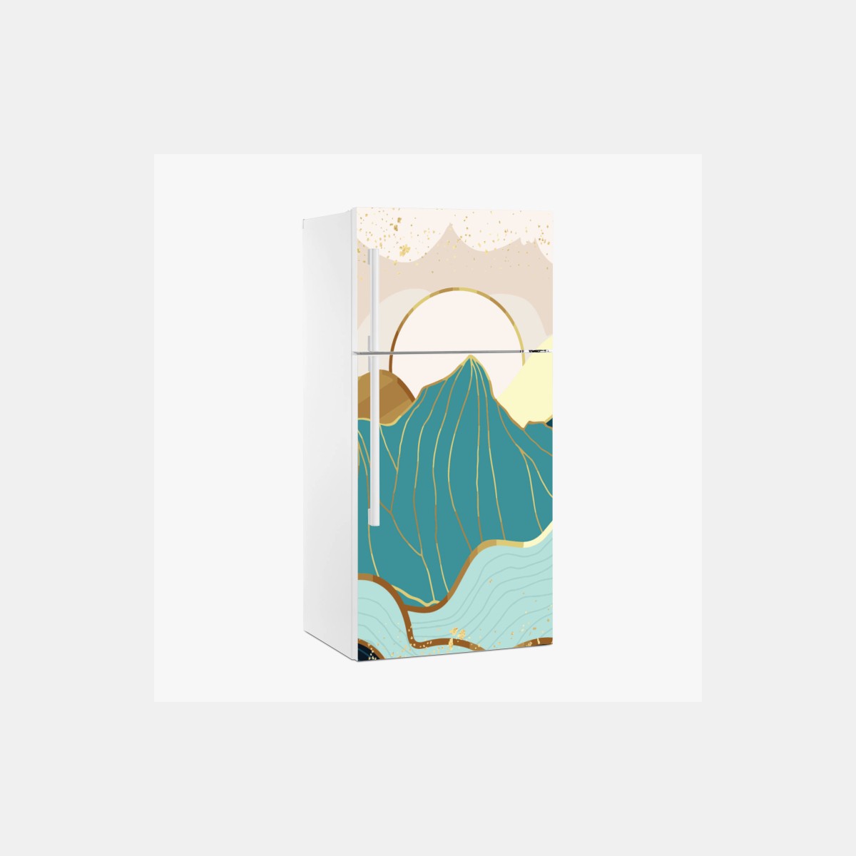 Fridge sticker Turquoise mountain sunrise with gold accents
