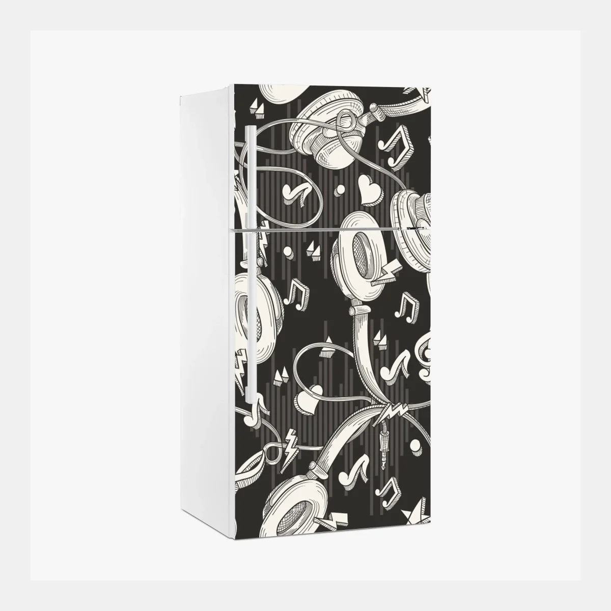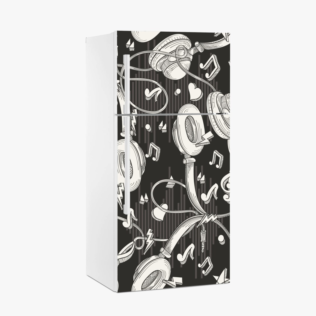 Fridge sticker Monochrome headphones and music notes pattern