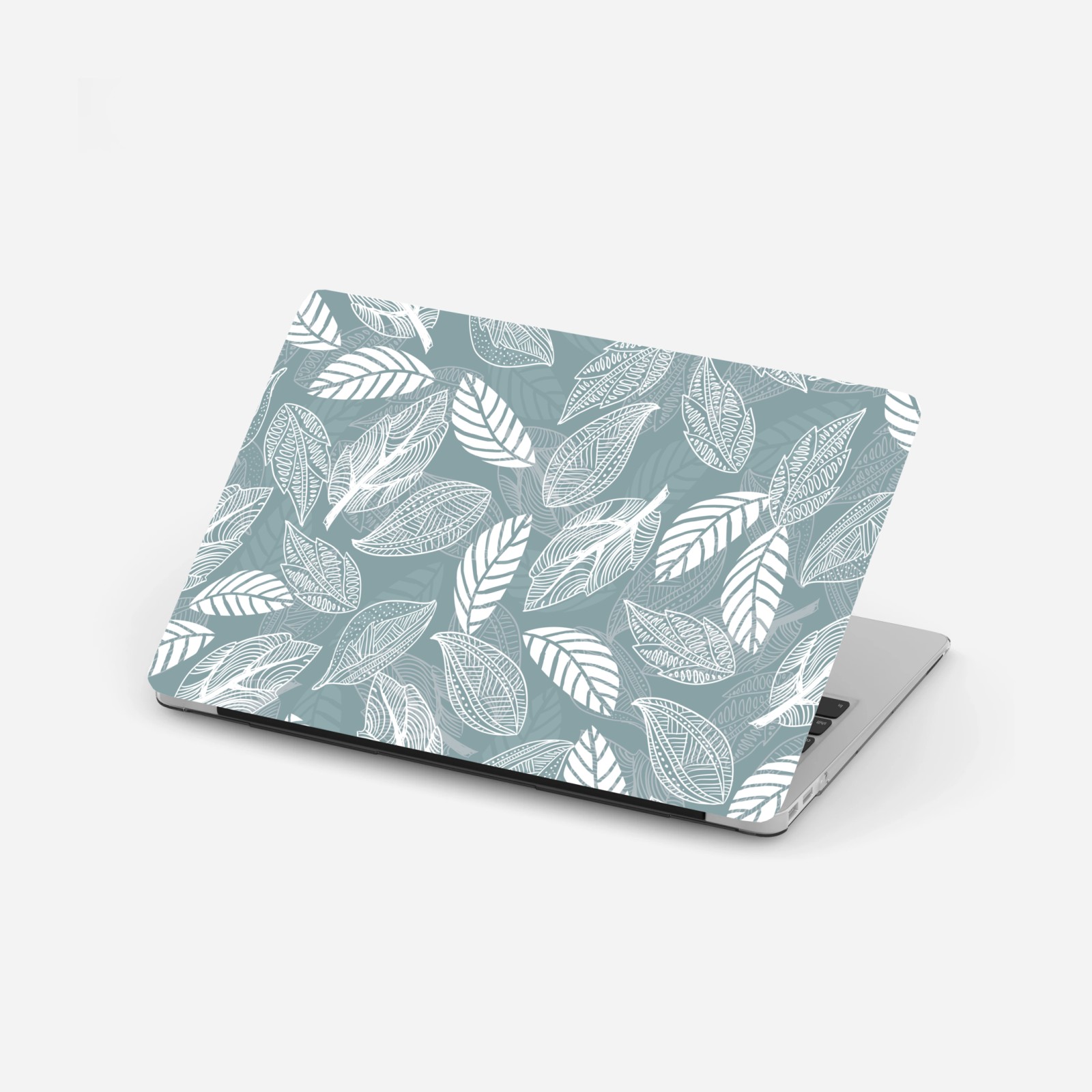 Laptop sticker Hand-drawn leaf pattern on teal background