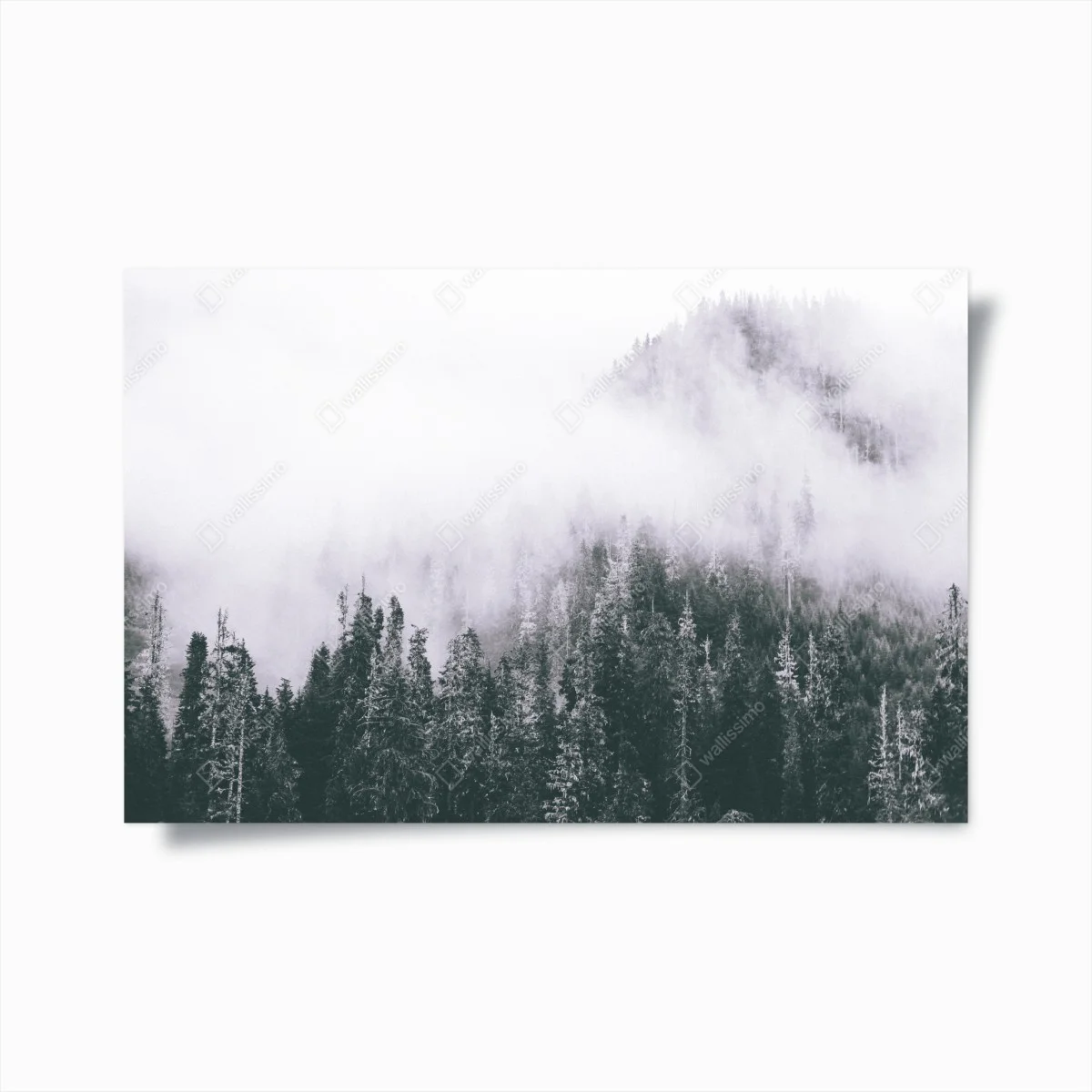 Poster Misty evergreen forest in fog