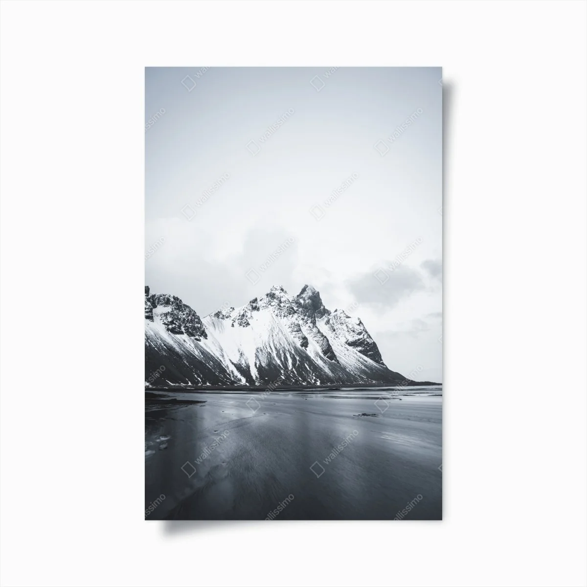 Poster Serene snow-capped mountain seascape