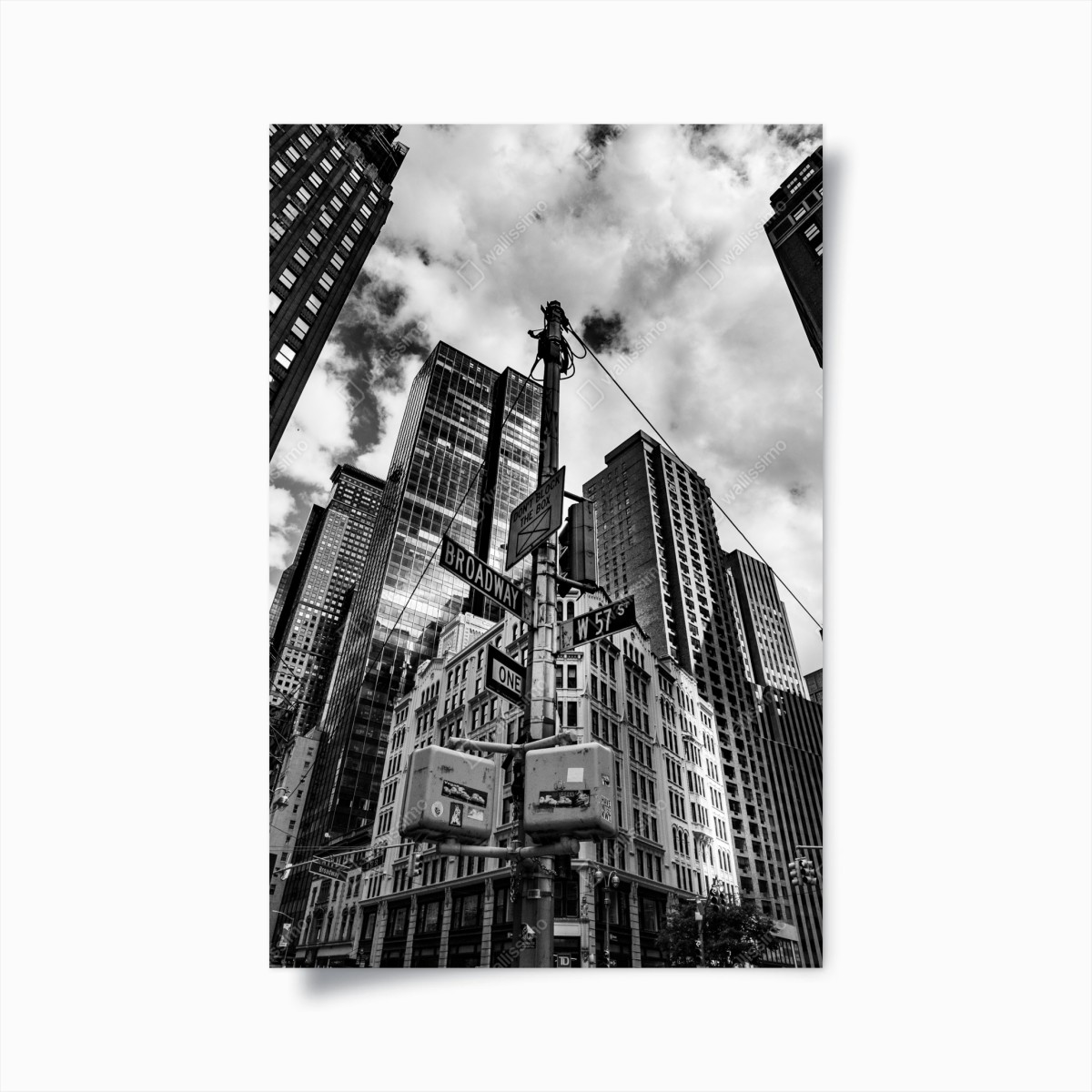 Poster Broadway at W 57 St — urban skyline in black and white