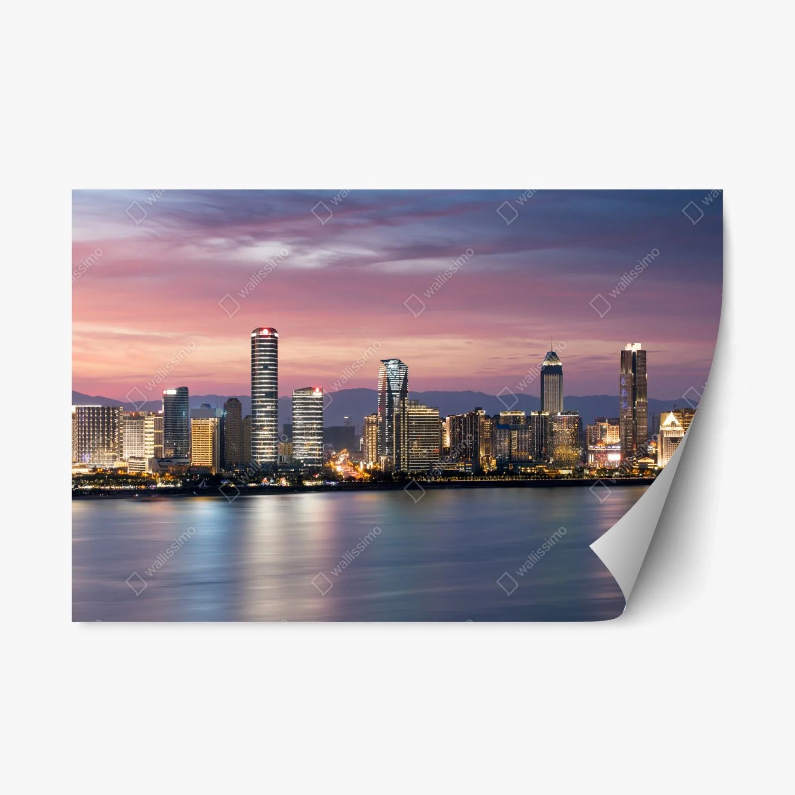 Repositionable sticker Tranquil city skyline at dusk