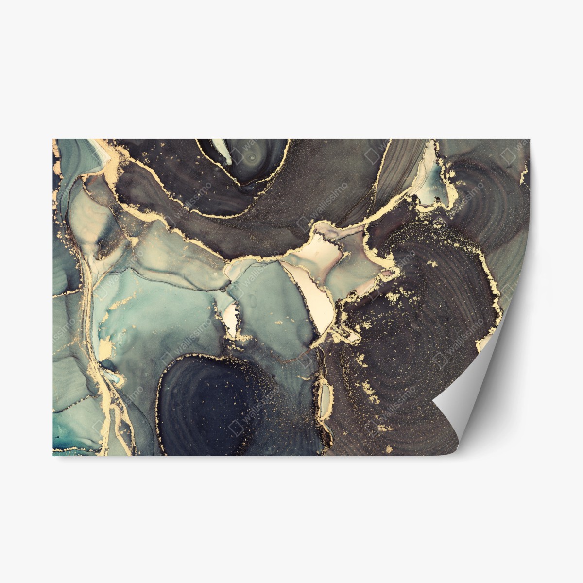 Repositionable sticker Turquoise and gold abstract fluid art