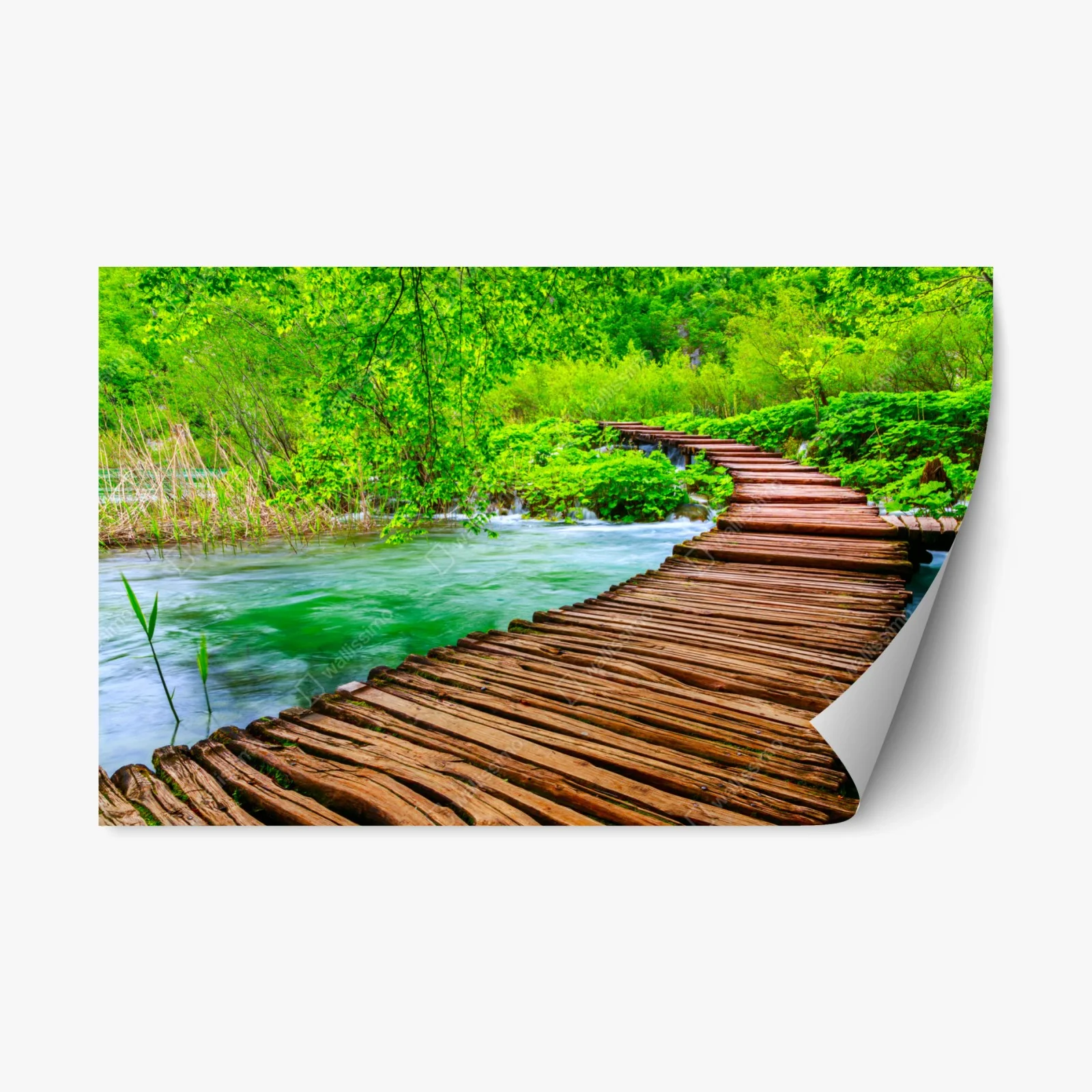 Repositionable sticker Serene green boardwalk over river