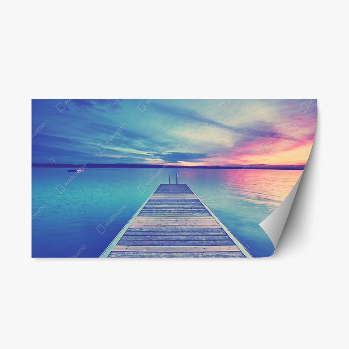 Repositionable sticker Pastel lake pier at sunset