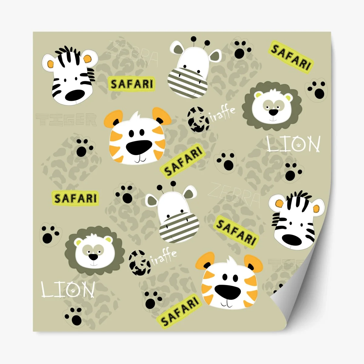 Repositionable sticker Cute safari animals nursery pattern