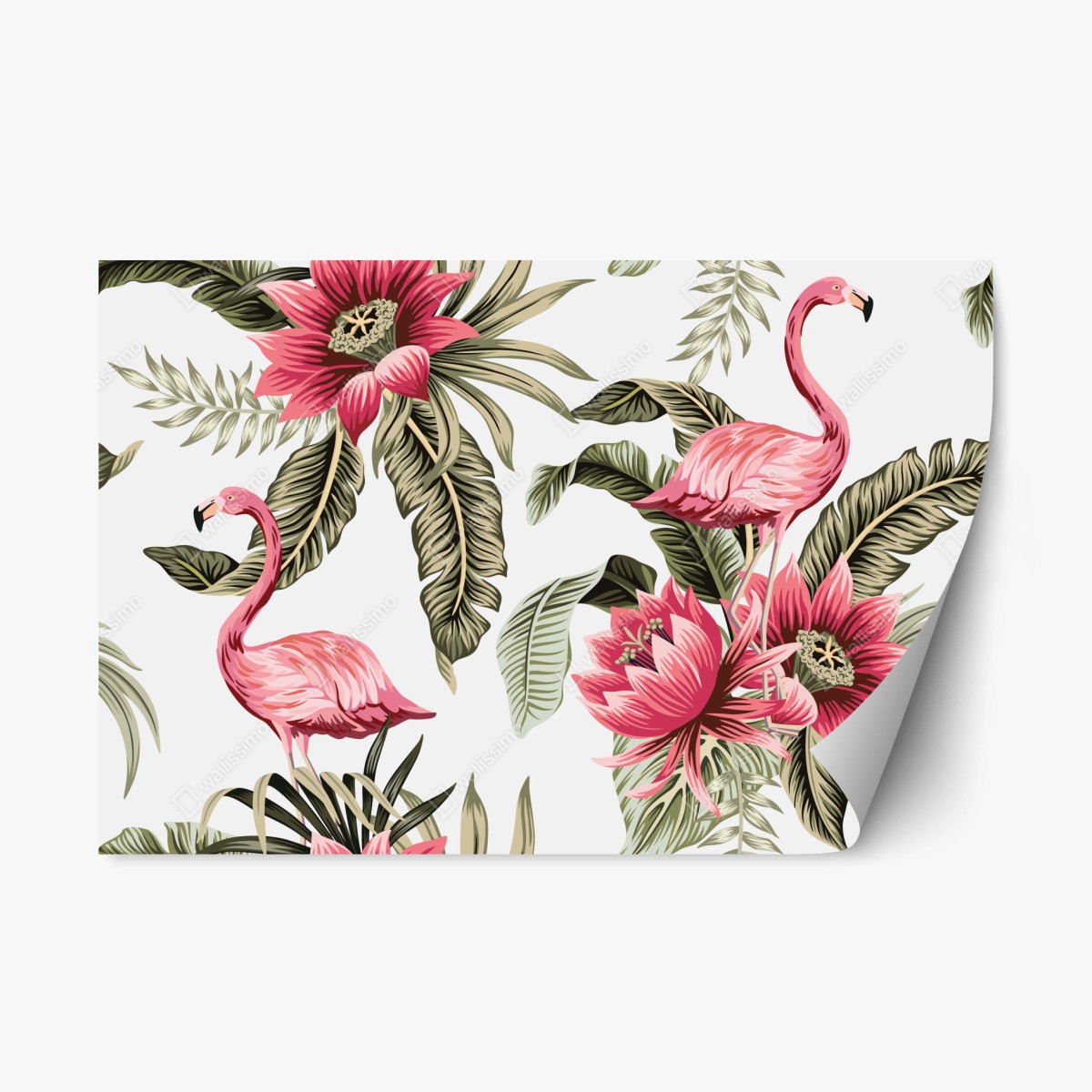 - botanical, seamless pattern, tropical, leaves, exotic, summer, illustration, flamingo, palm, pink flowers