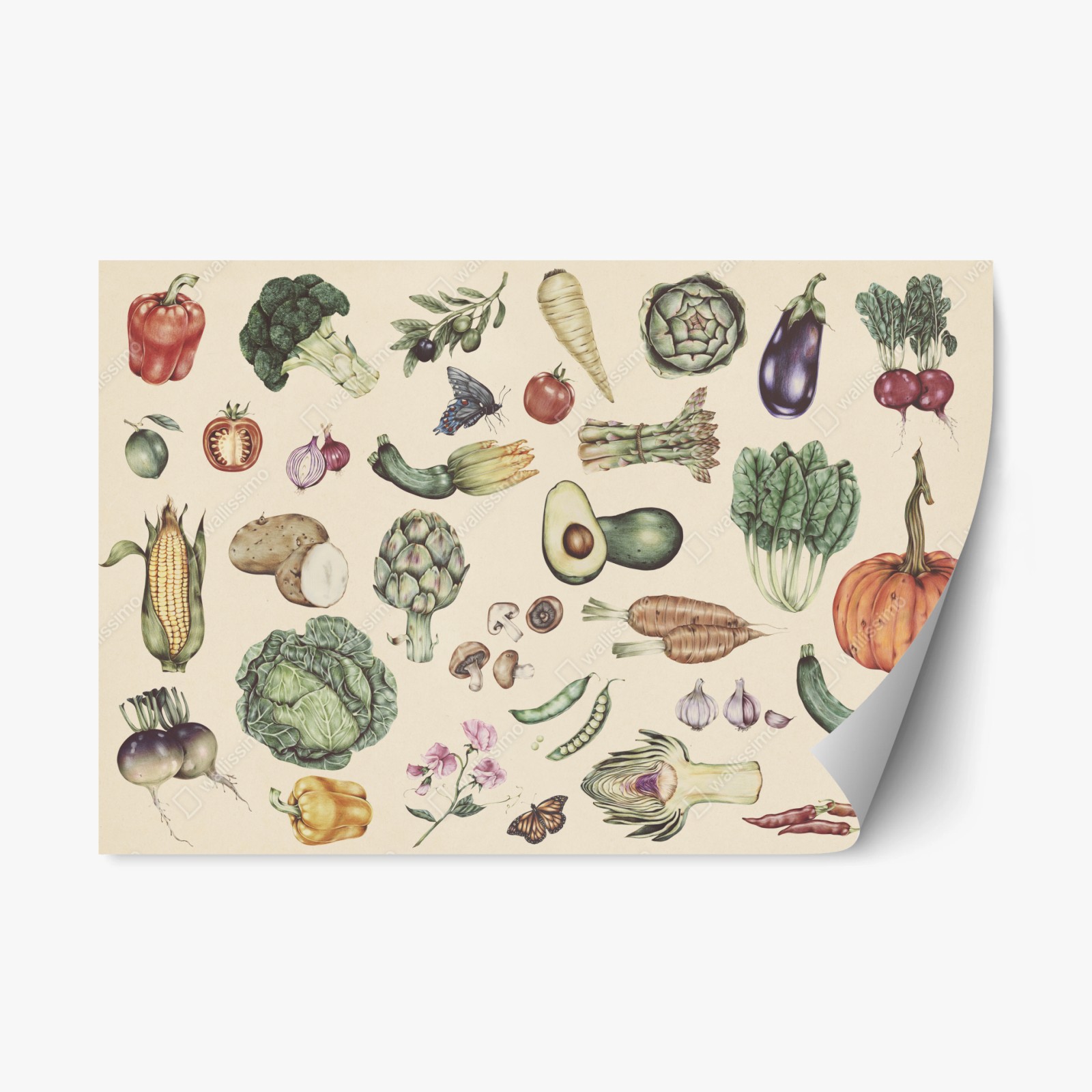 Repositionable sticker Hand-drawn vegetable botanical print