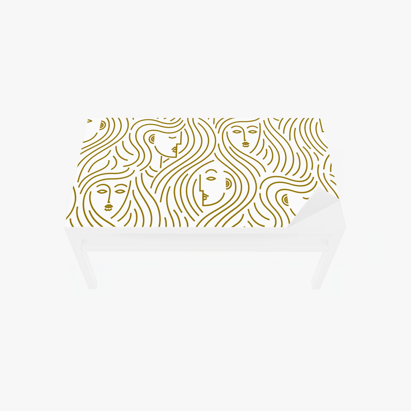 - line art, seamless pattern, minimalist, gold, decorative, art deco, abstract pattern, female faces, wavy hair, vector design