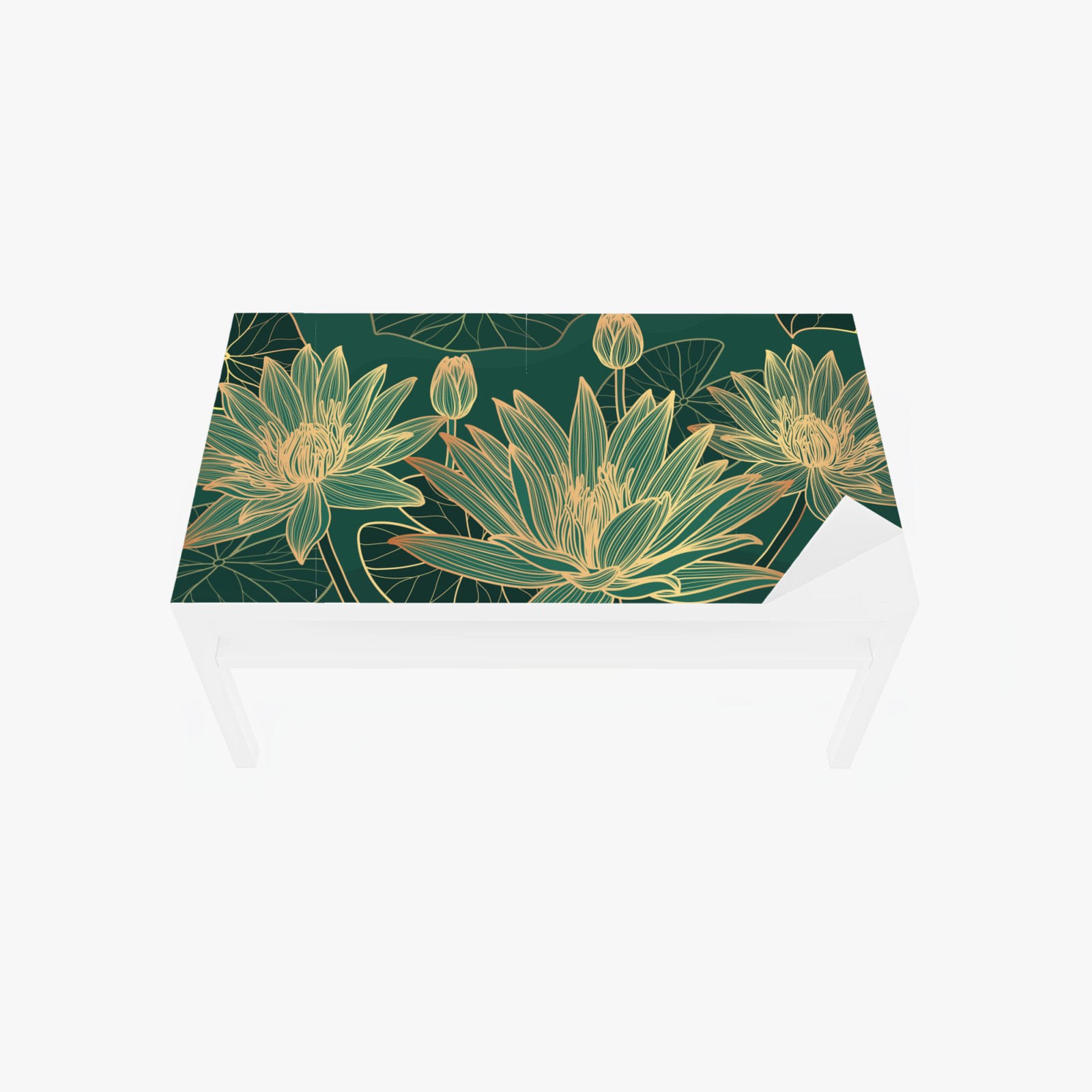 Table & desk veneer Gold lotus floral illustration on emerald background
