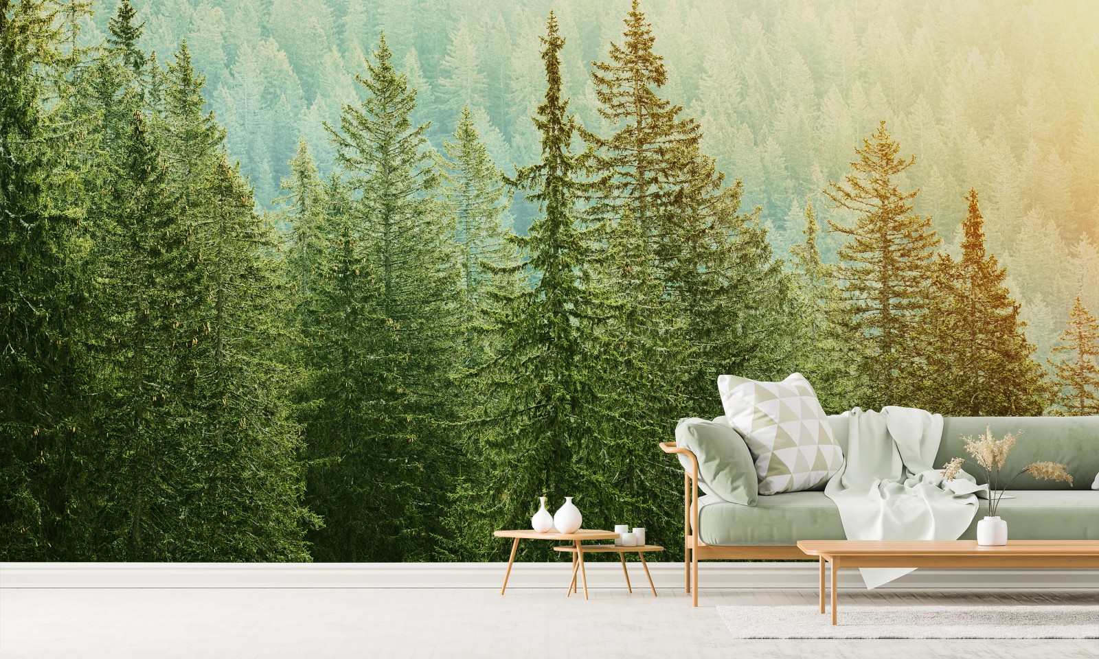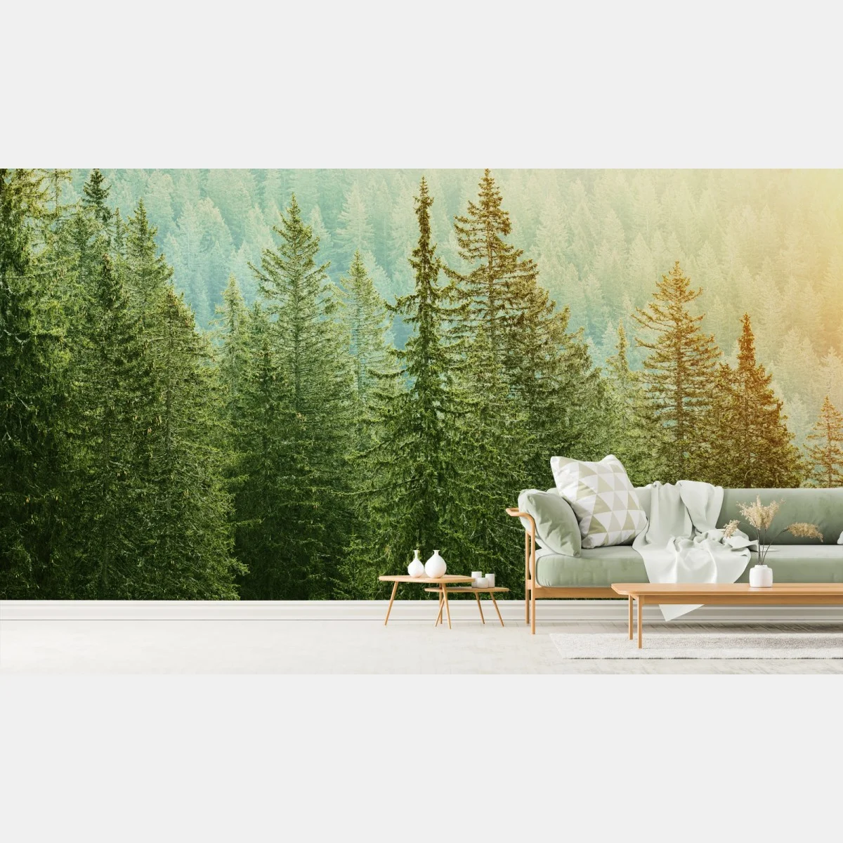 Wall mural Sunlit evergreen forest