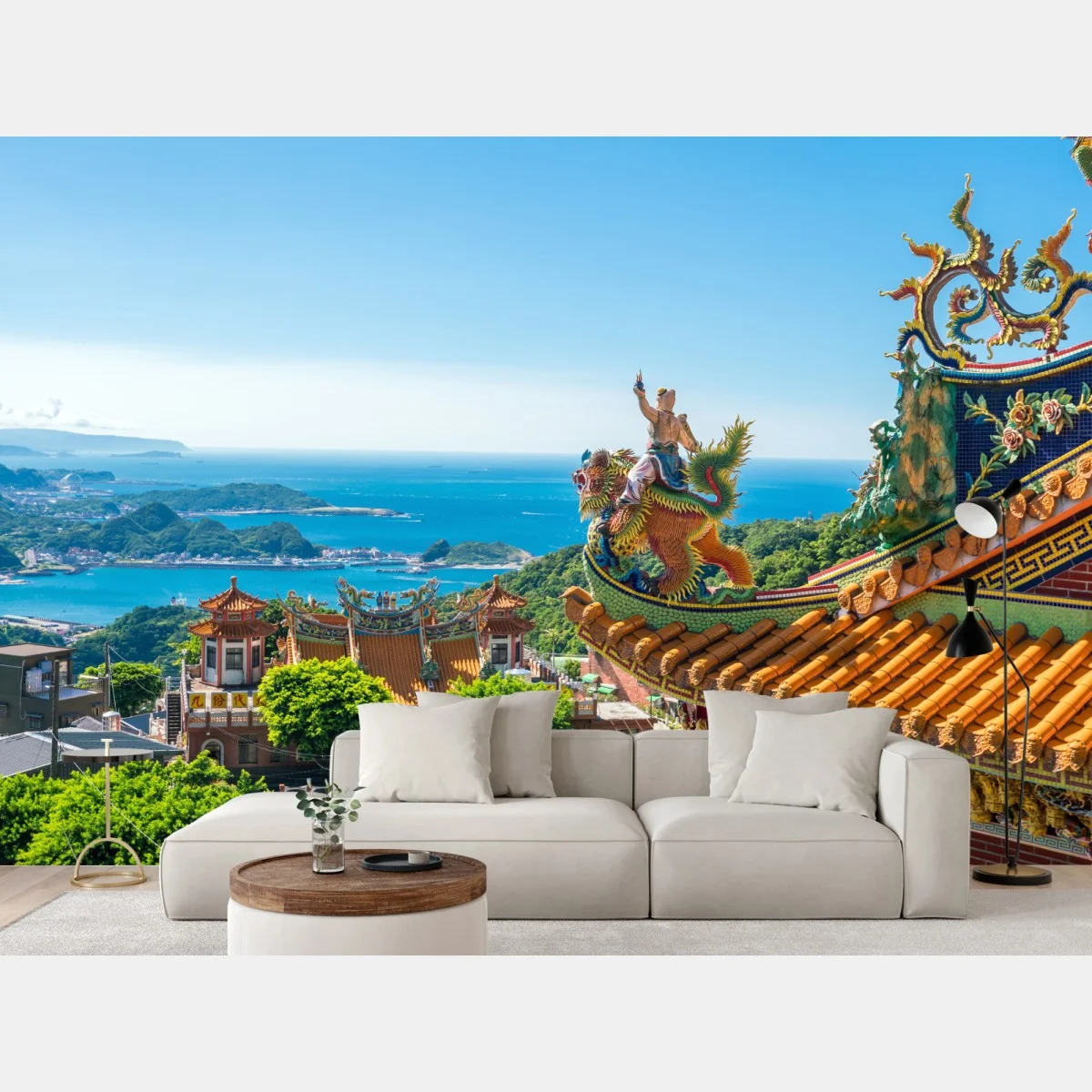 Wall mural Temple overlooking the coast of Jiufen, Taiwan