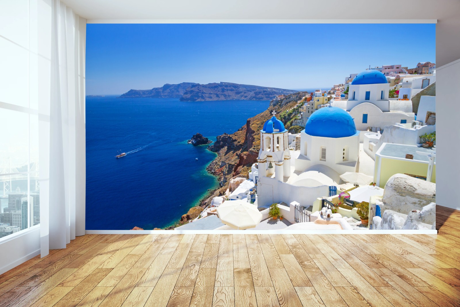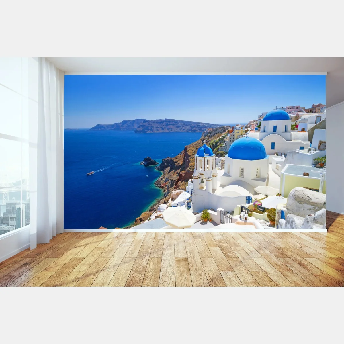 Wall mural Santorini blue domes over the caldera