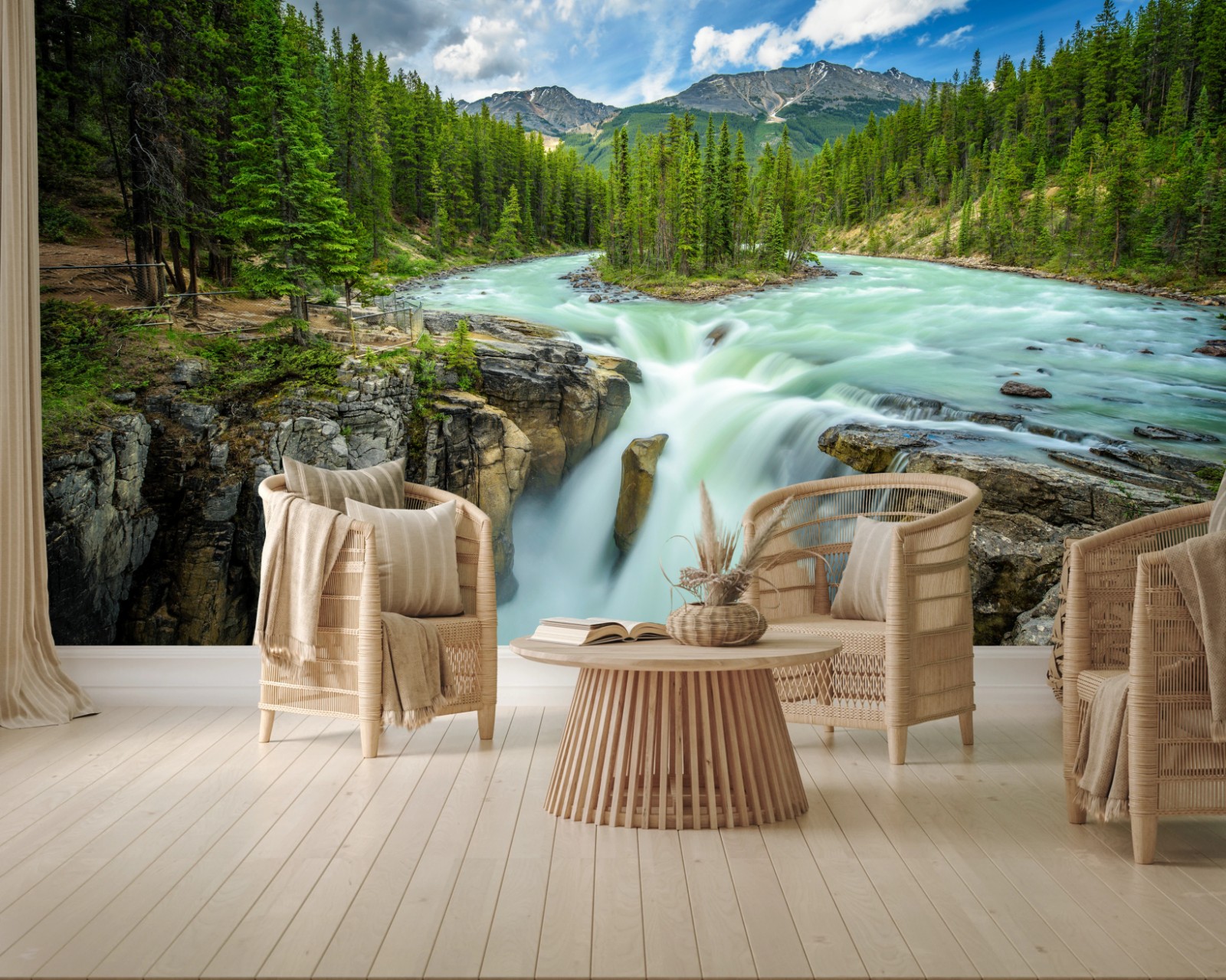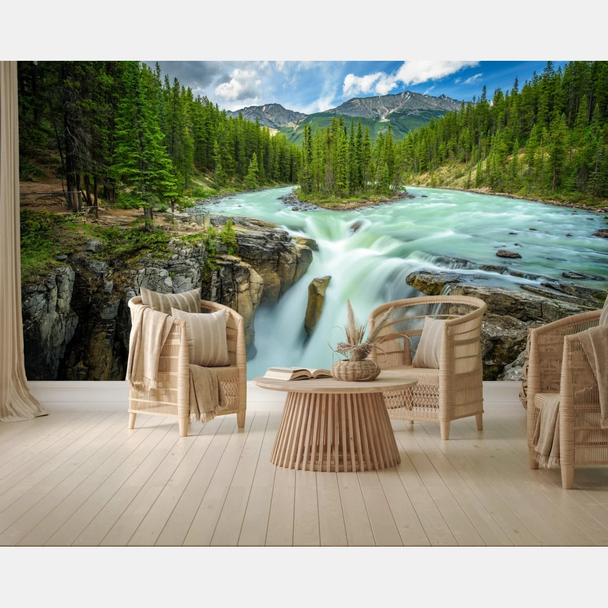 Wall mural Misty river gorge at Upper Sunwapta Falls, Jasper National Park