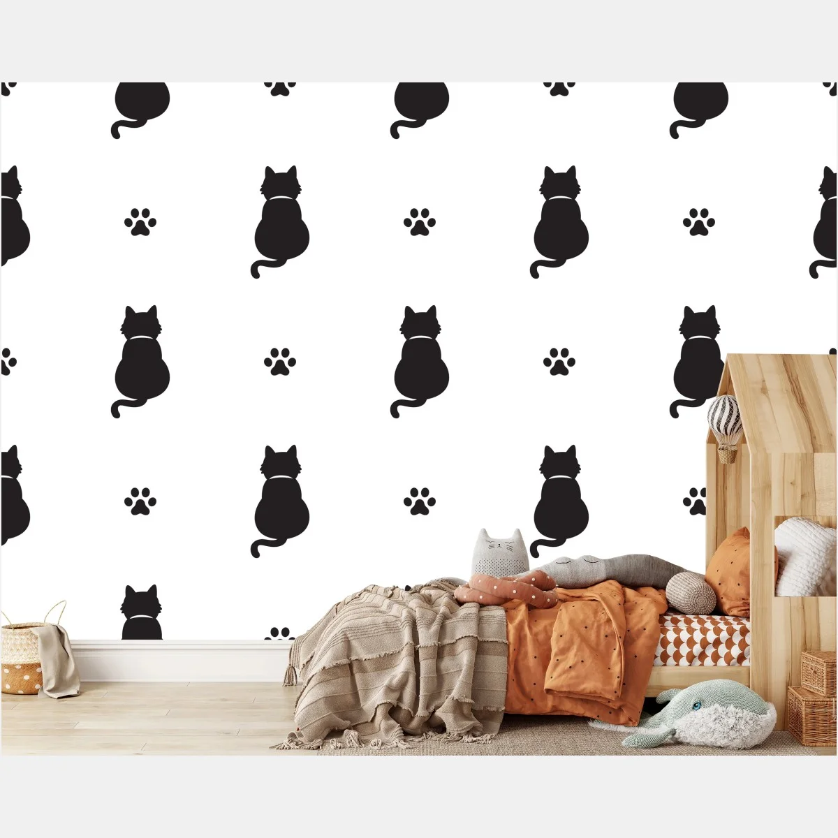 Wall mural Black cat silhouette pattern