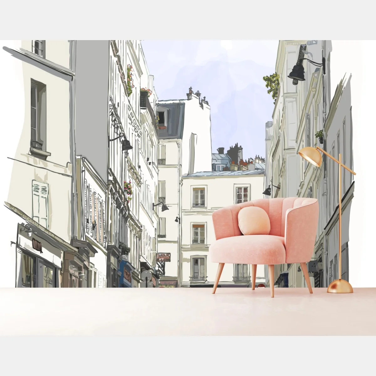 - cityscape, urban, architecture, illustration, travel, watercolor, street, buildings, paris, montmartre