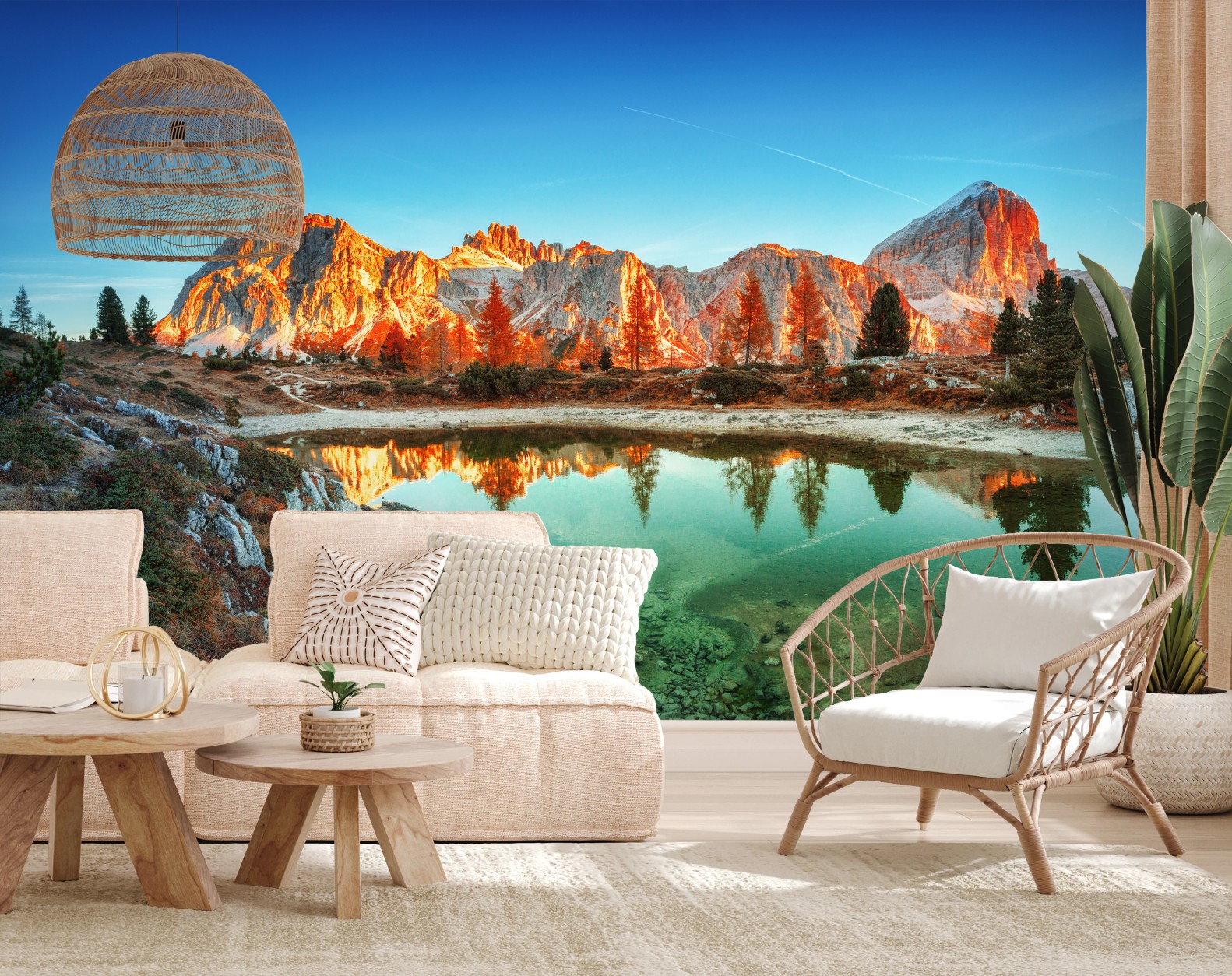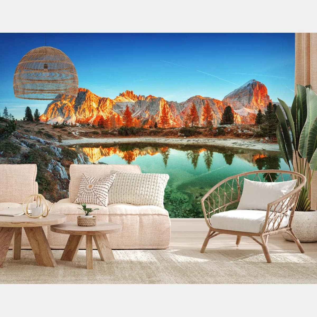 Wall mural Alpine sunrise over mountain lake