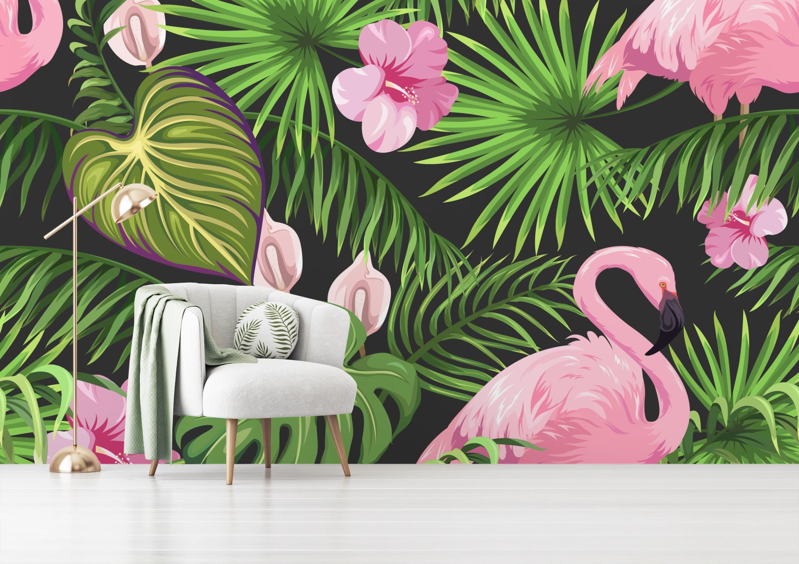 Wall mural Pink flamingo tropical pattern