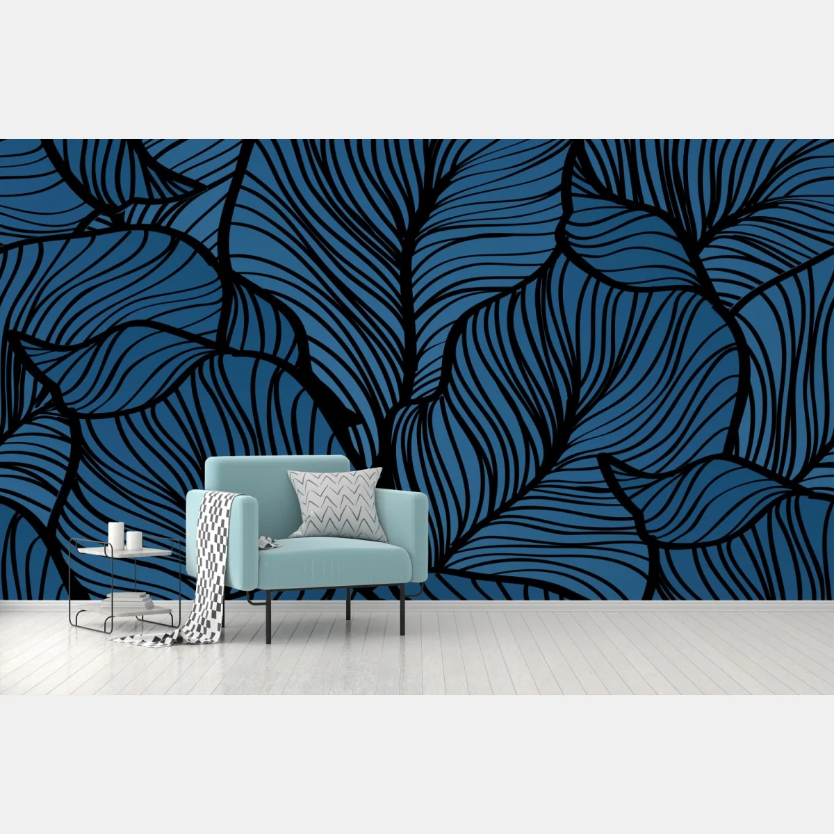 - modern, botanical, blue, abstract, decorative, leaves, floral, seamless, leaf pattern, ornamental