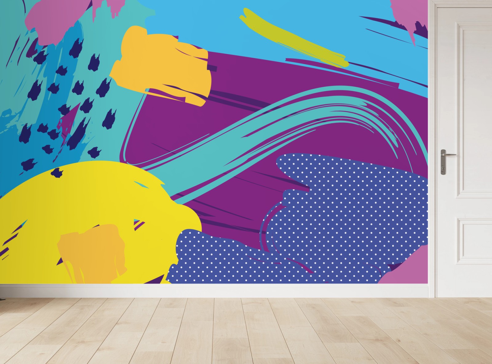 - abstract, colorful, vibrant, modern, geometric, retro, pop art, polka dots, brush strokes, mural