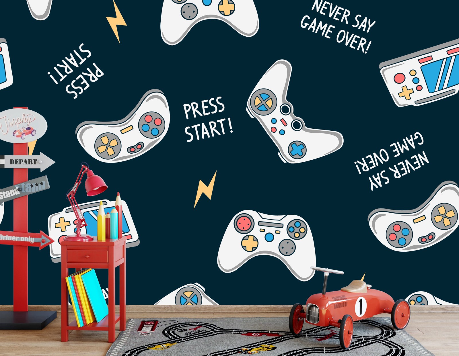 - seamless pattern, gaming, joystick, console, kids room, game controller, video games, retro controller, arcade, gamer
