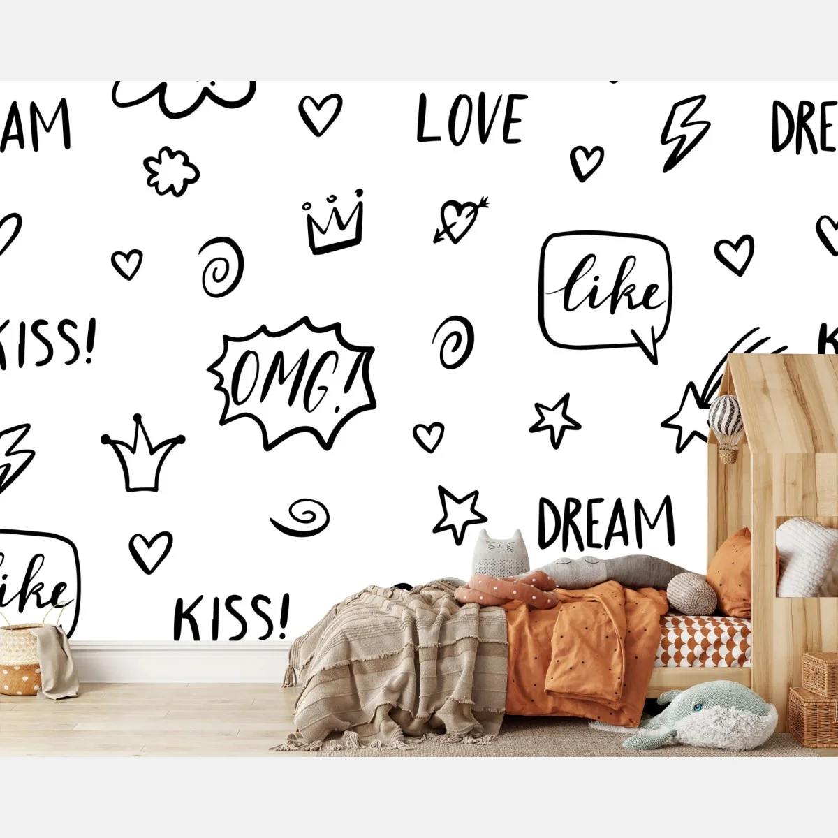 Wall mural Playful doodle pattern with hearts and stars