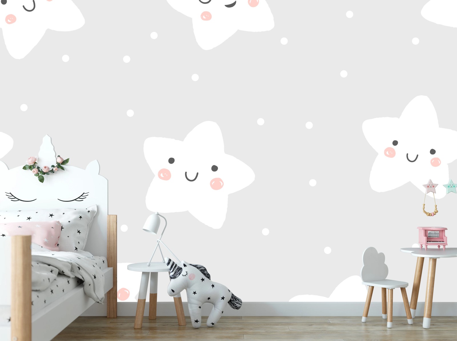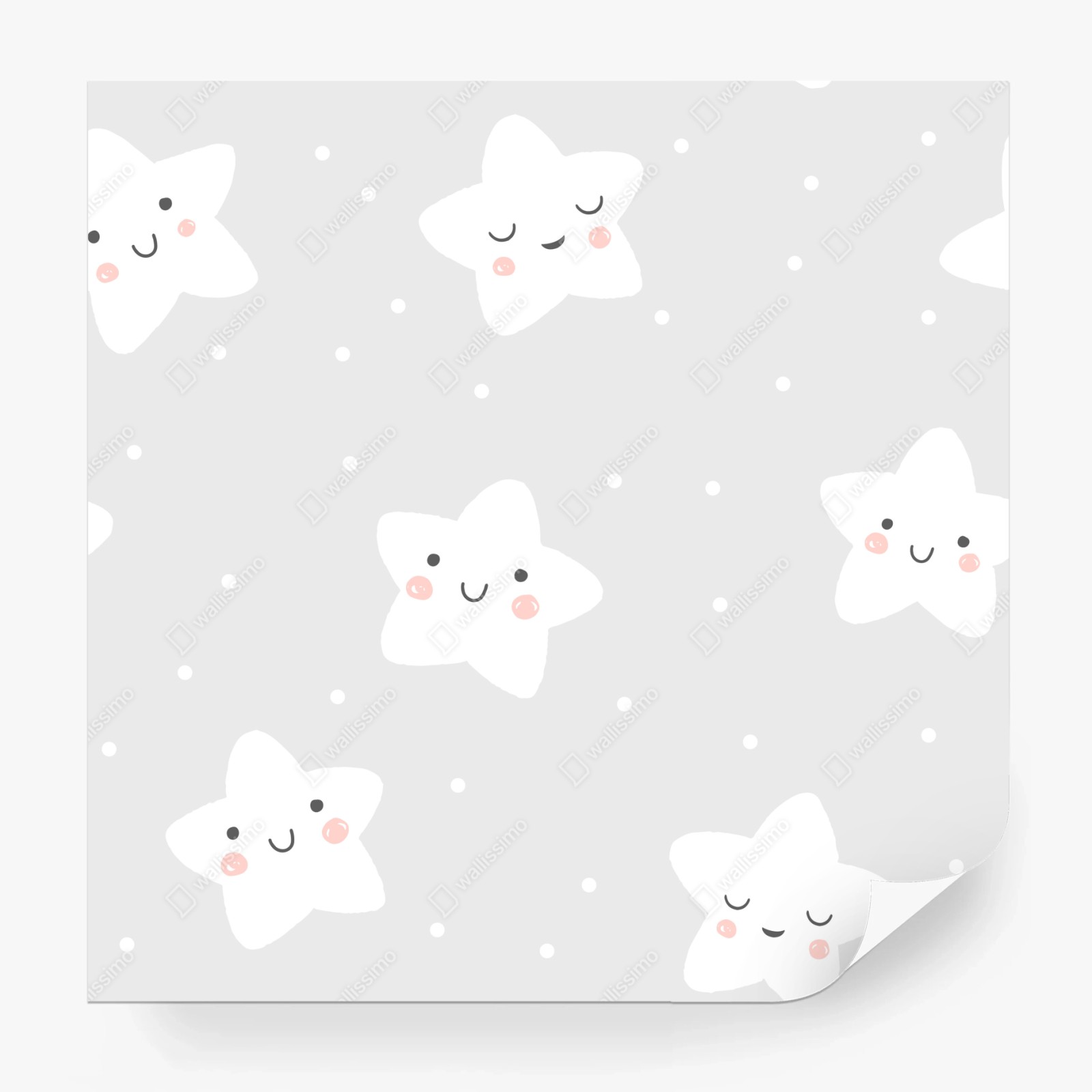 - seamless pattern, polka dots, gray background, nursery pattern, pastel design, baby room decor, children wallpaper, cute stars, kawaii stars, sleeping stars