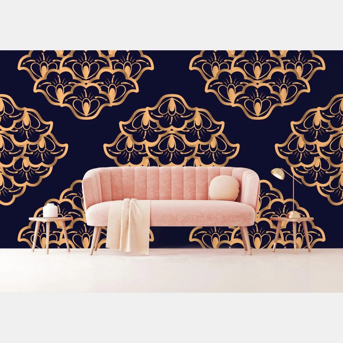Wall mural Luxurious gold damask pattern on deep navy