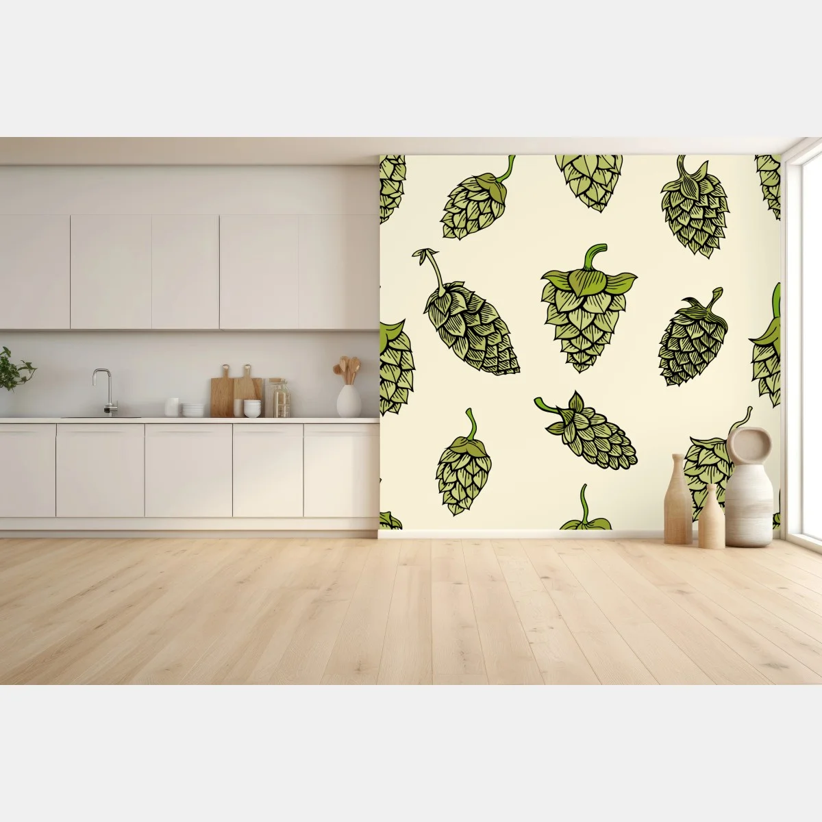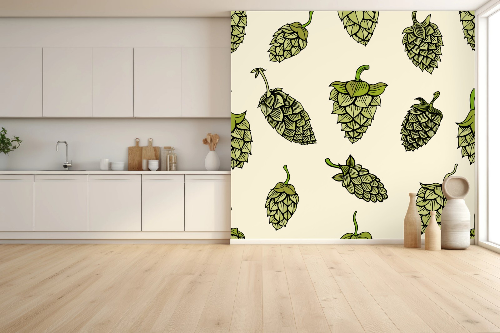 Wall mural Hand-drawn hops pattern