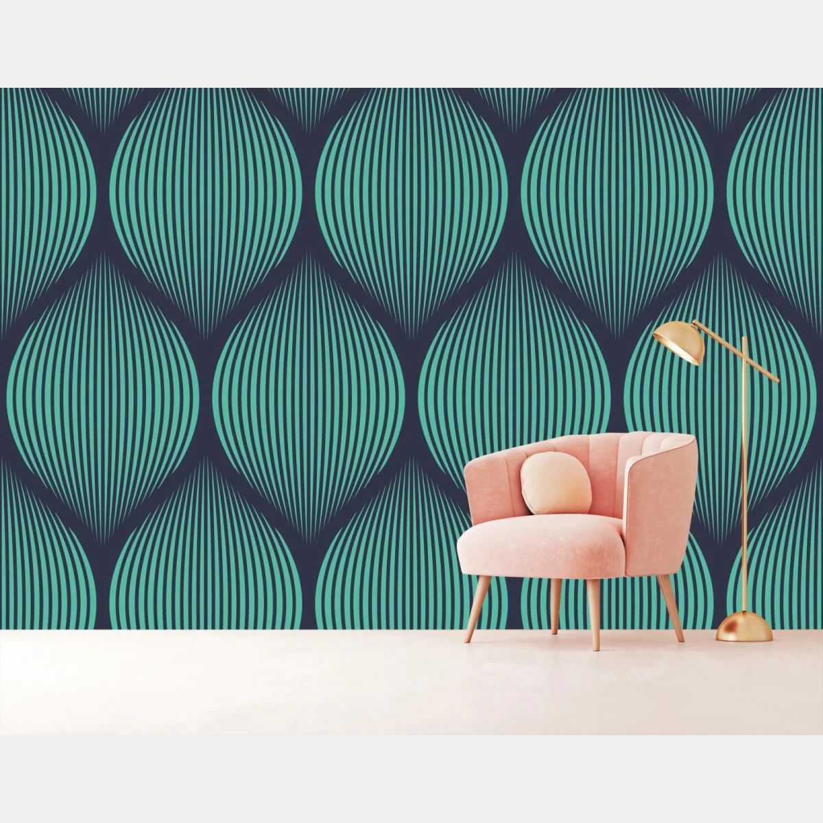 - seamless pattern, wallpaper, turquoise, decorative, retro, geometric pattern, navy background, abstract design, midcentury, repeating motif
