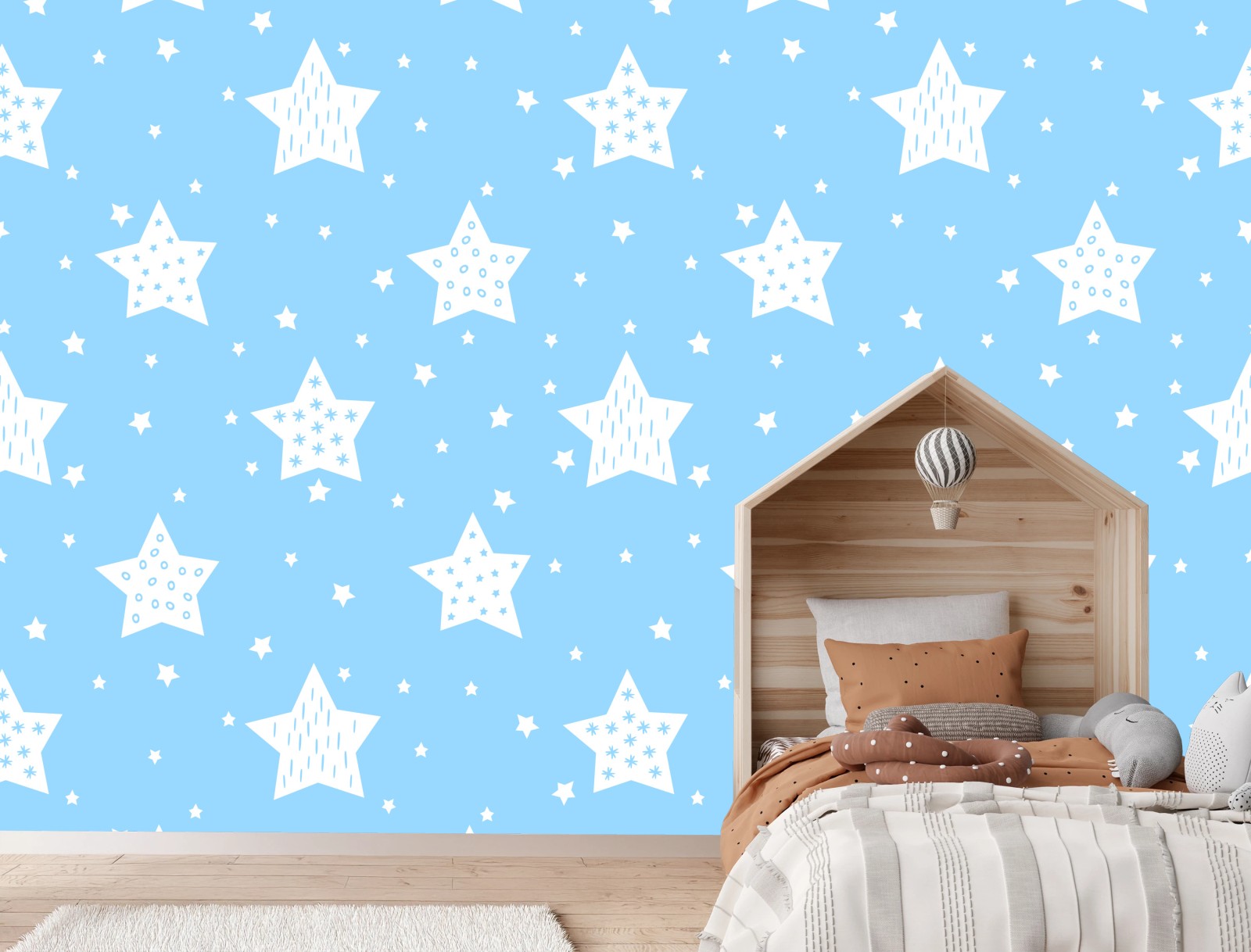 - stars, night sky, kids decor, nursery art, pastel design, children wallpaper, star pattern, baby blue, patterned background, white stars
