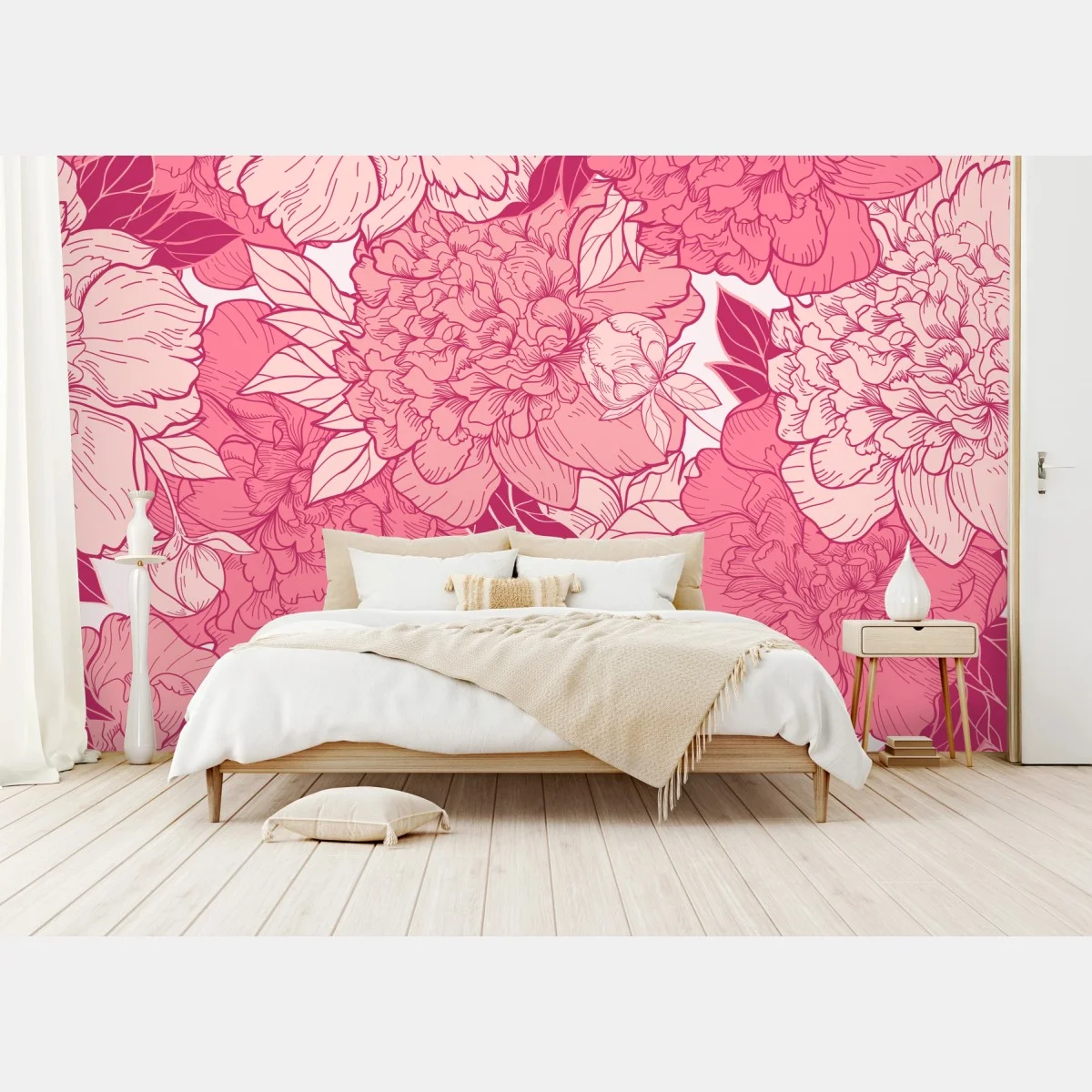 Wall mural Pink peony floral pattern