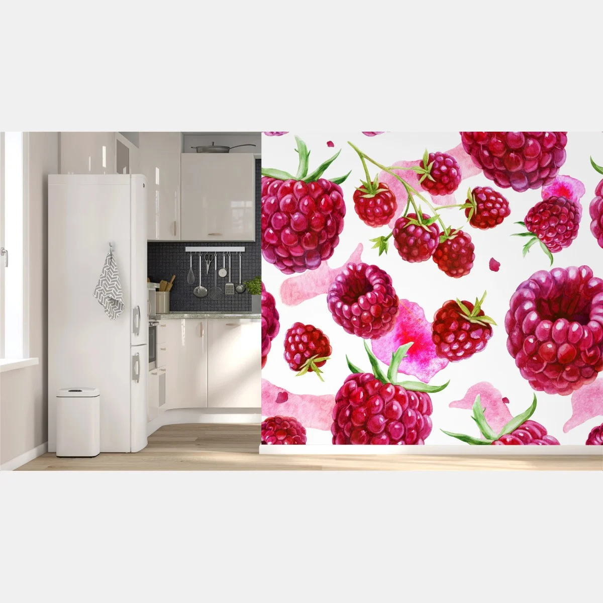 Wall mural Watercolor raspberry pattern