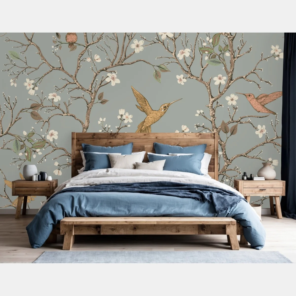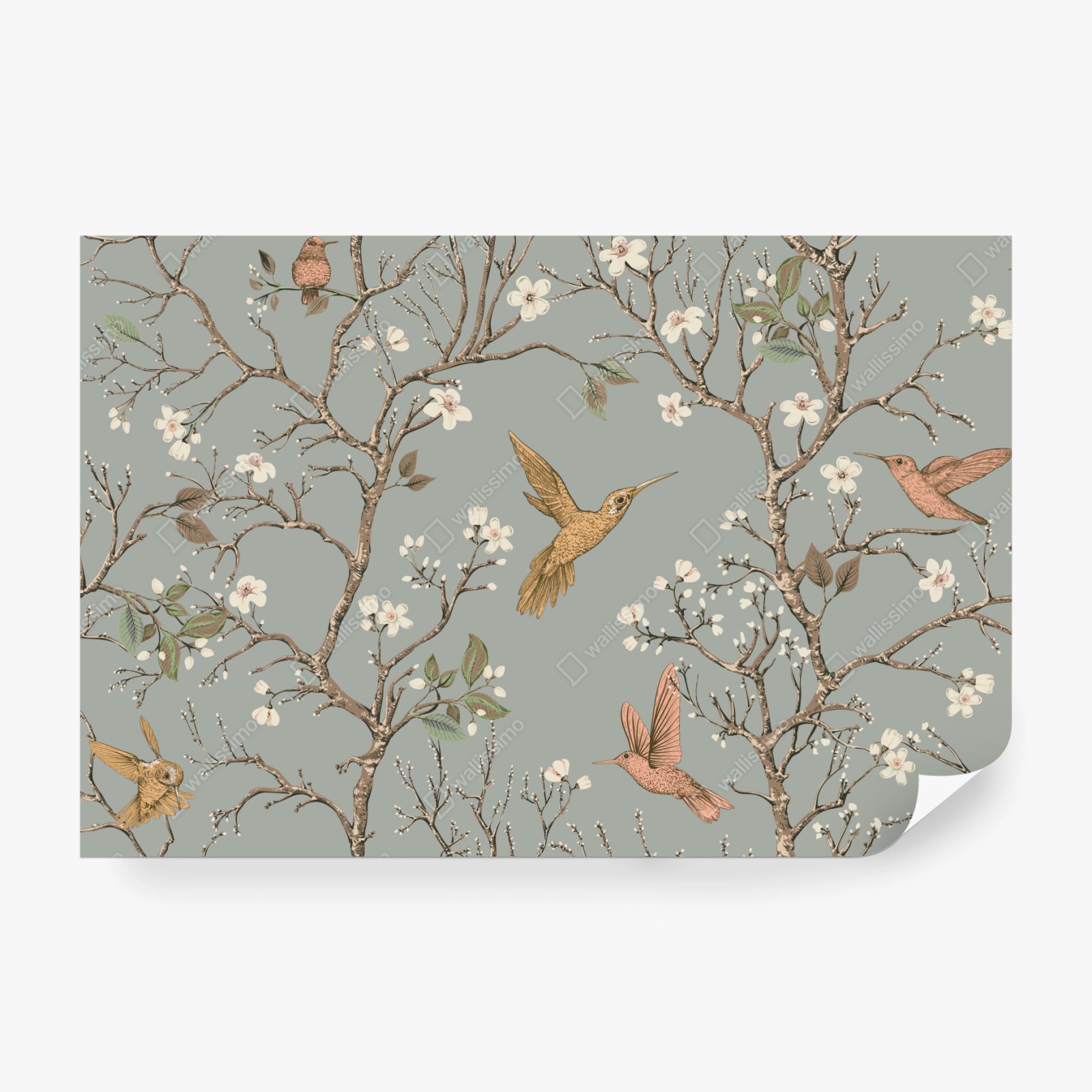 Wall mural Vintage hummingbird blossom pattern