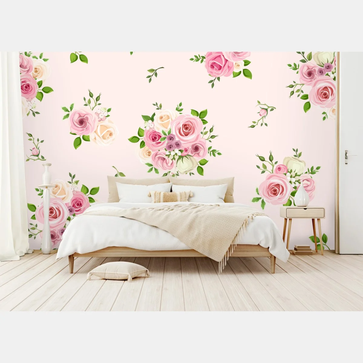 Wall mural Delicate pink rose bouquet pattern