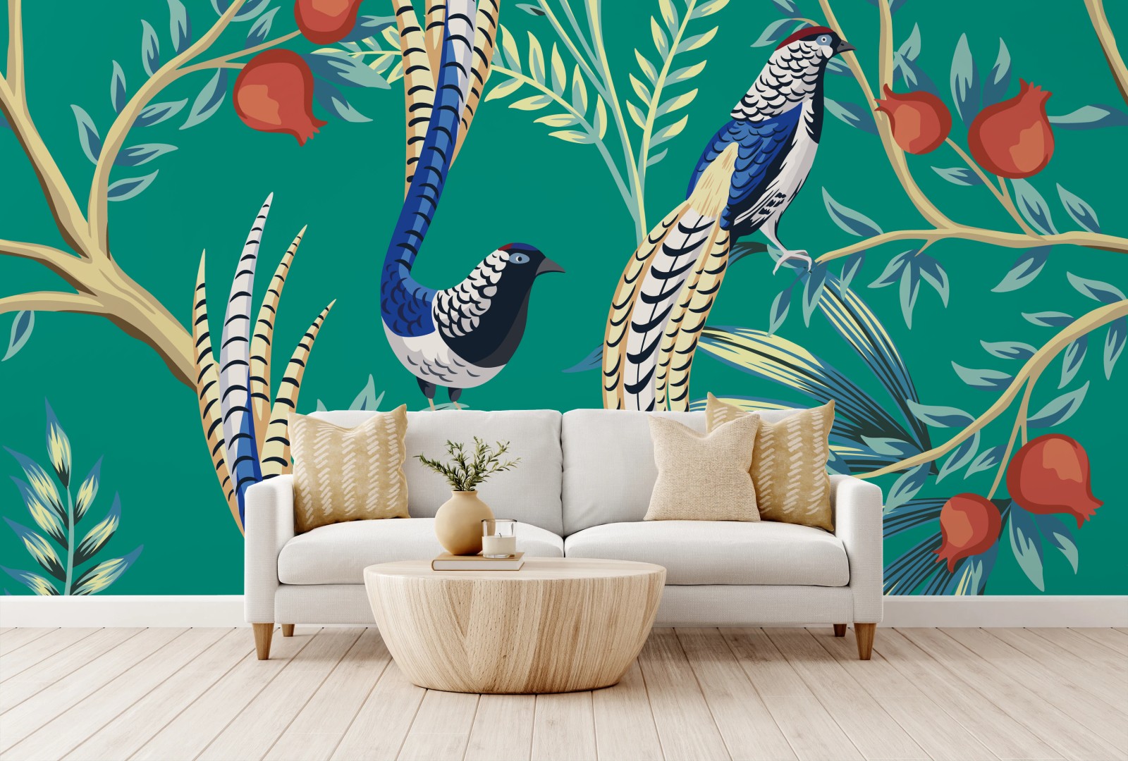 Wall mural Exotic bird and pomegranate pattern