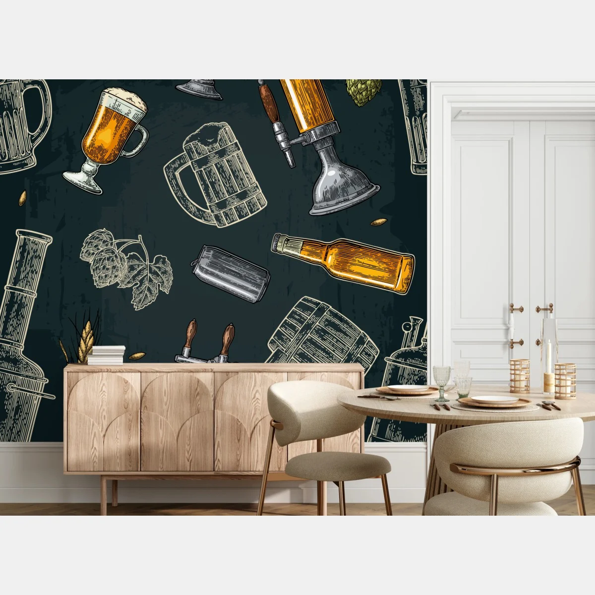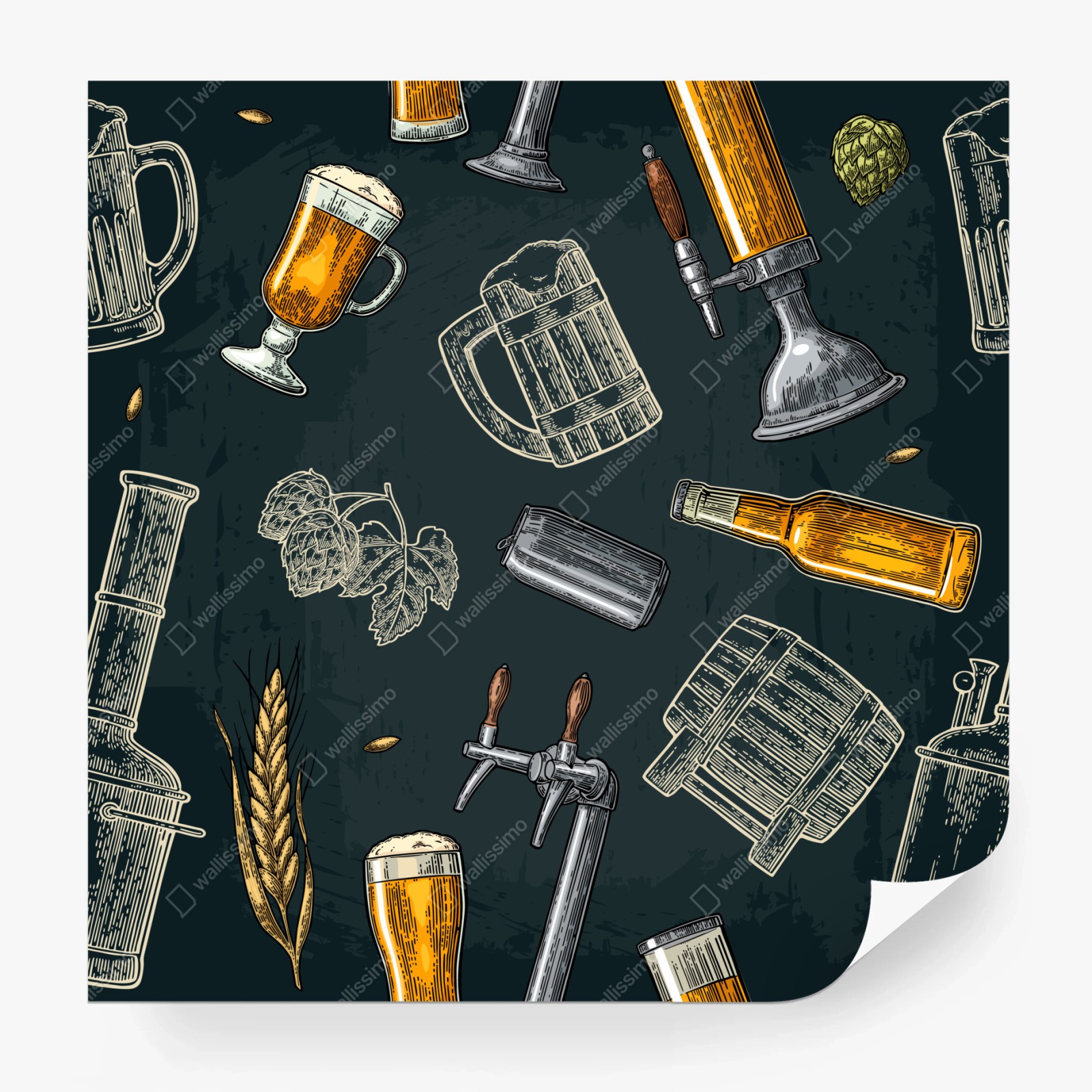 Wall mural Vintage beer brewery pattern